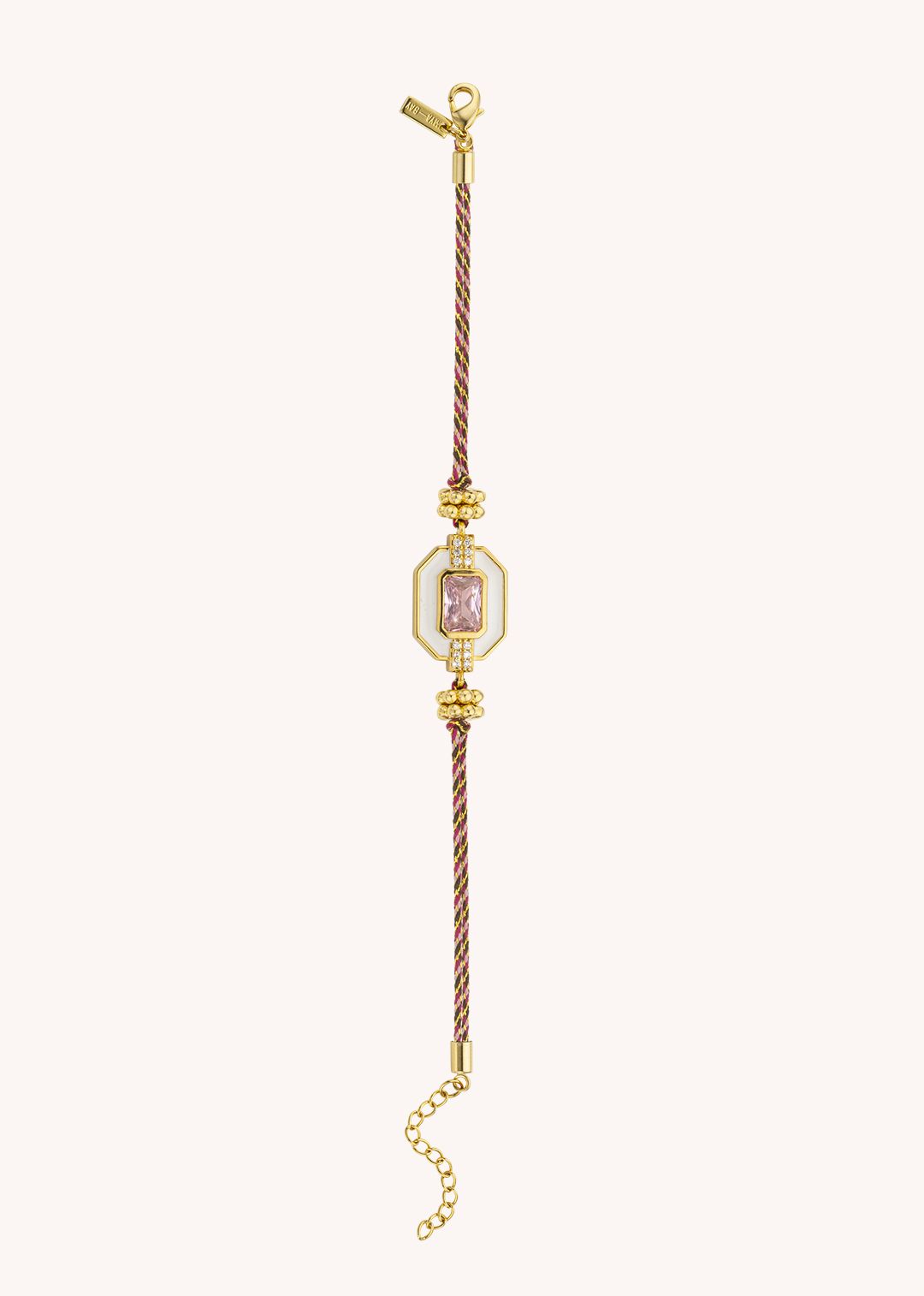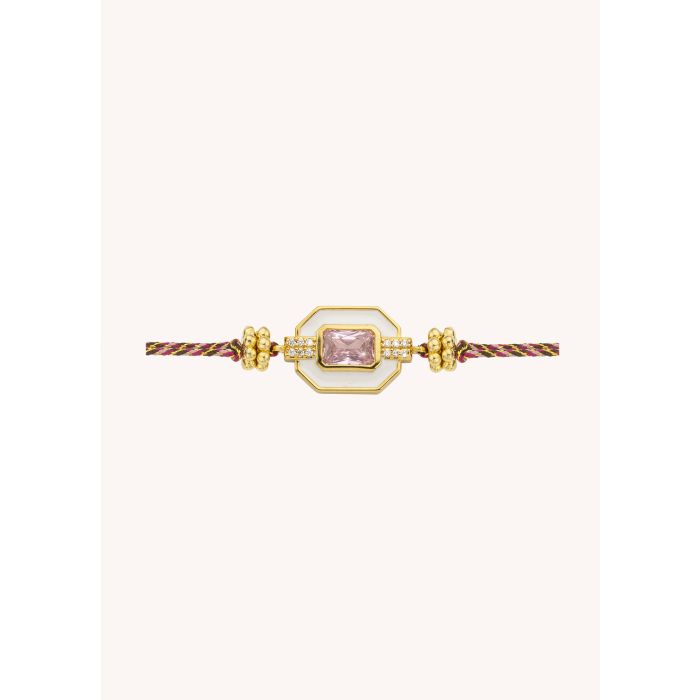 The ART DECO bracelet arrives in four pop colors: fuchsia, white, turquoise, or purple enamel.