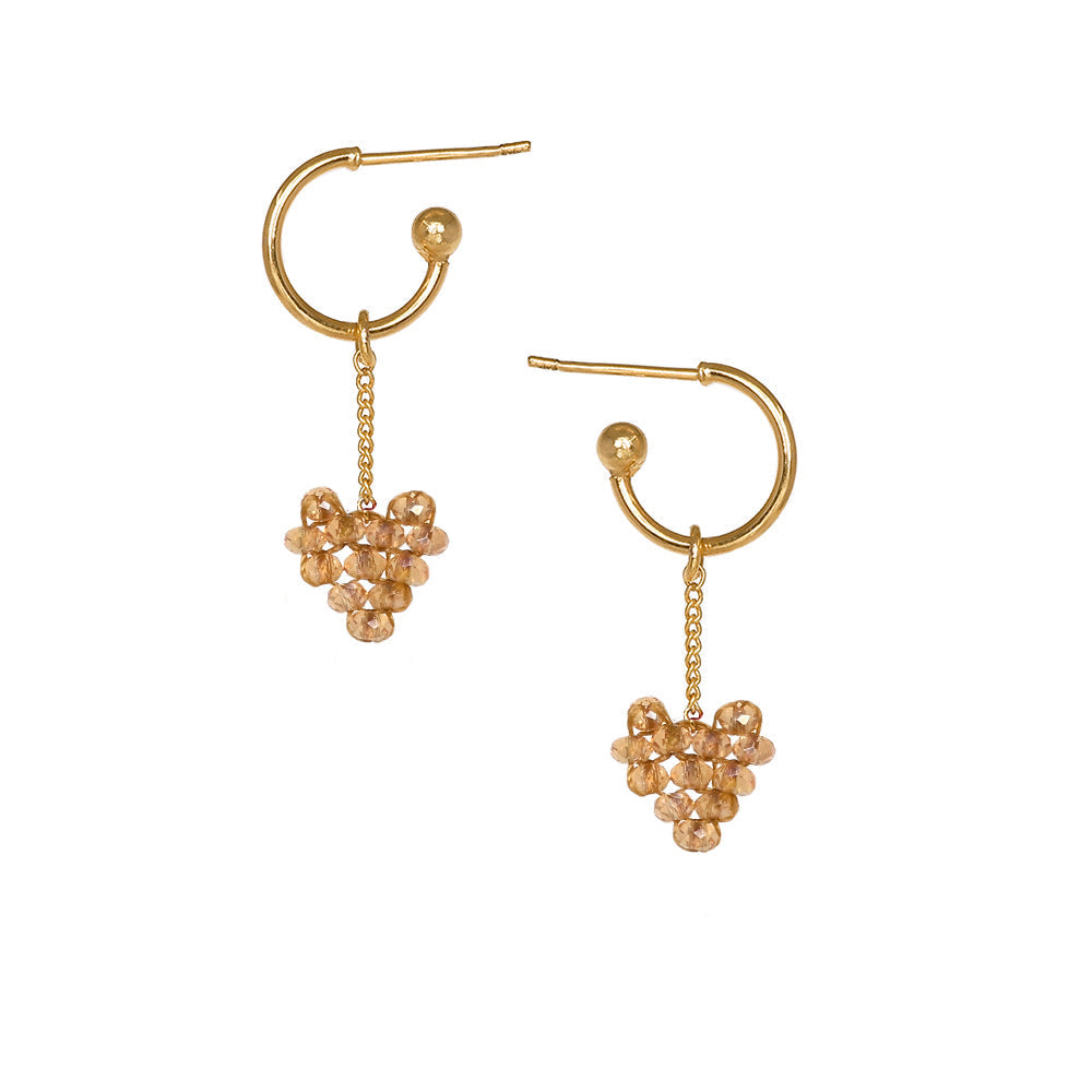 Glass japanese beads, bronze gold plated hoops, bronze gold plated love charm
