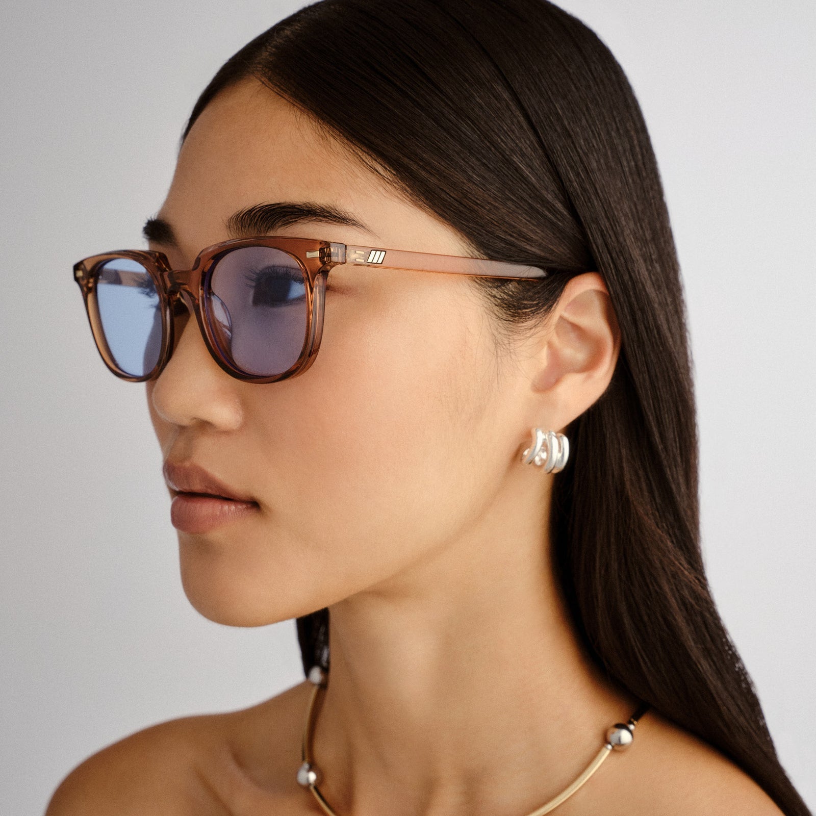 • Finished in a barley frame with sky blue tint lenses.