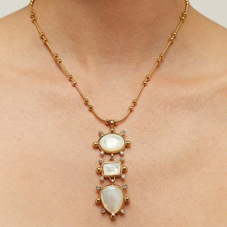 Tiki 3 Rows Necklace - White Mother-Of-Pearl, Amazonite & Blue Apatite