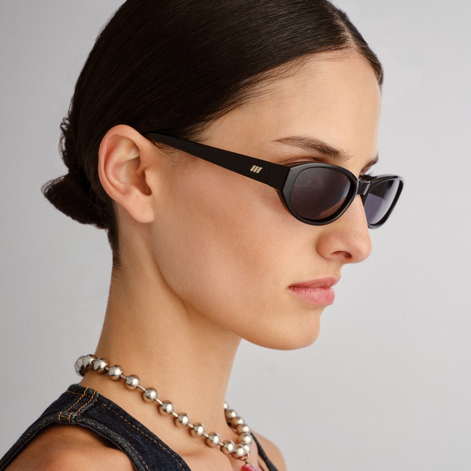 Add a touch of nostalgia to any outfit with our early 90s inspired DON’T CHA slimline oval sunglasses. Designed with a sleek, exaggerated frame and wider fit for all faces, these frames feature a lightly wrapped profile and are finished with discreet signature Le Specs metal hardware on both temples.