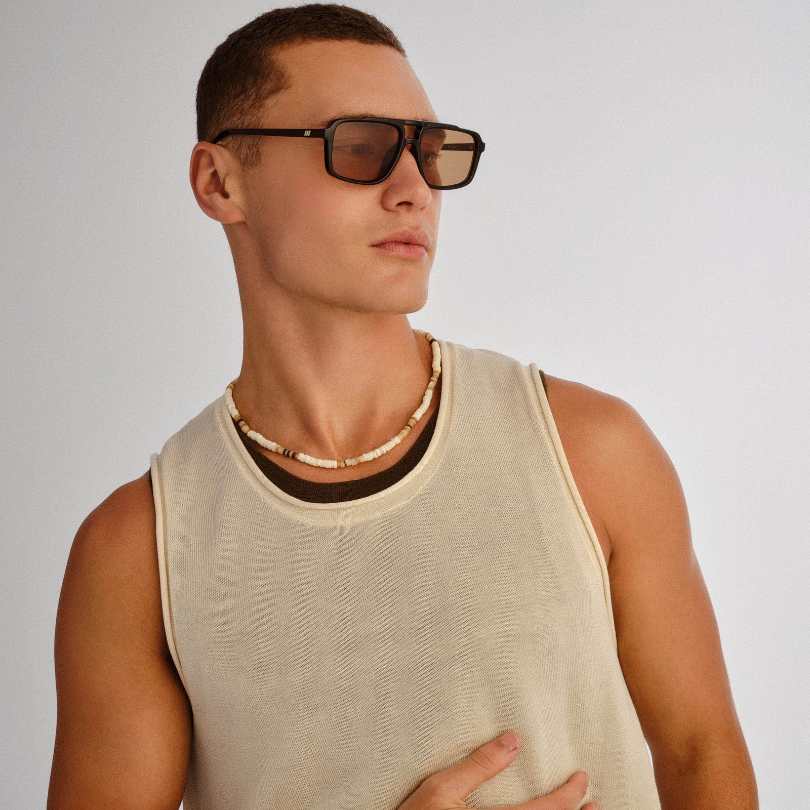 Designed for impact and comfort, LE GARS redefines the aviator silhouette with a bold, structured shape tailored for broader face shapes. This wearable, unisex frame is finished with discreet classic Le Specs flagstripe hardware to its fine temples.
