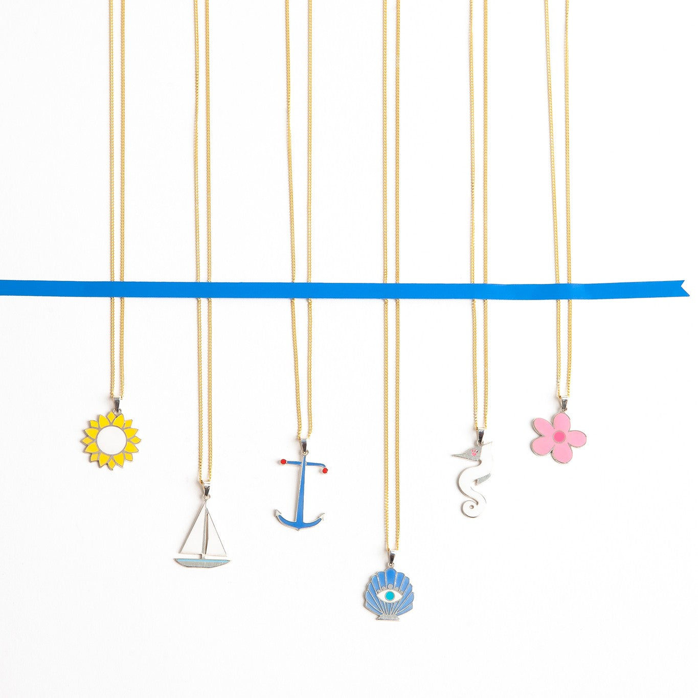 The Lucky Charms collection has many different designs. Each of them represent different aspects of reality in an abstract way. The collection is made entirely of silver 925, ceramic color and gold or platimun plated chain.