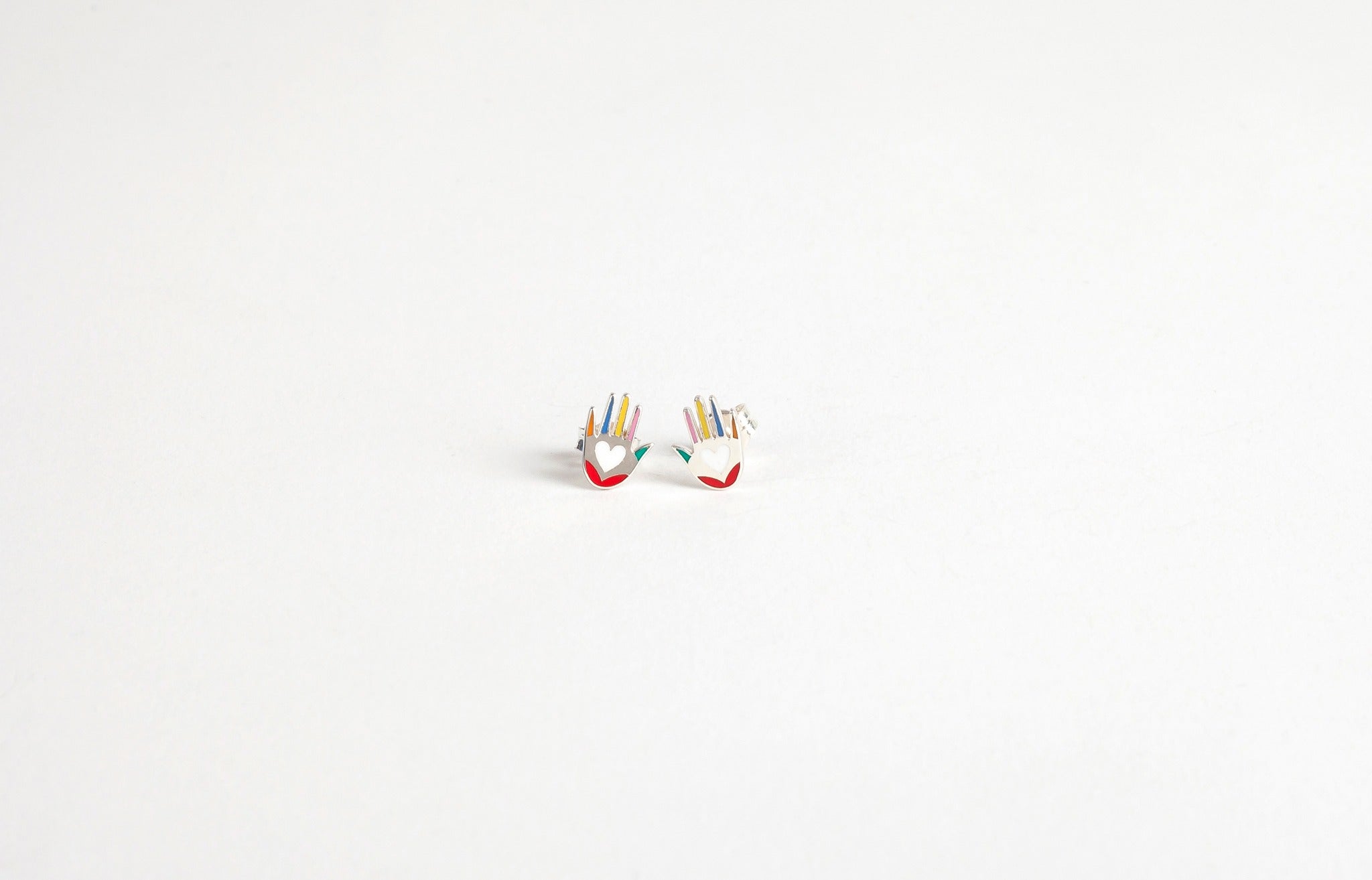 The lucky charms is our brand new stud earrings collection for 2025. The collection has 10 different designs. Each of them represent a symbol of reality in an abstract way. The collection is made entirely of silver 925 and the colors are ceramic.