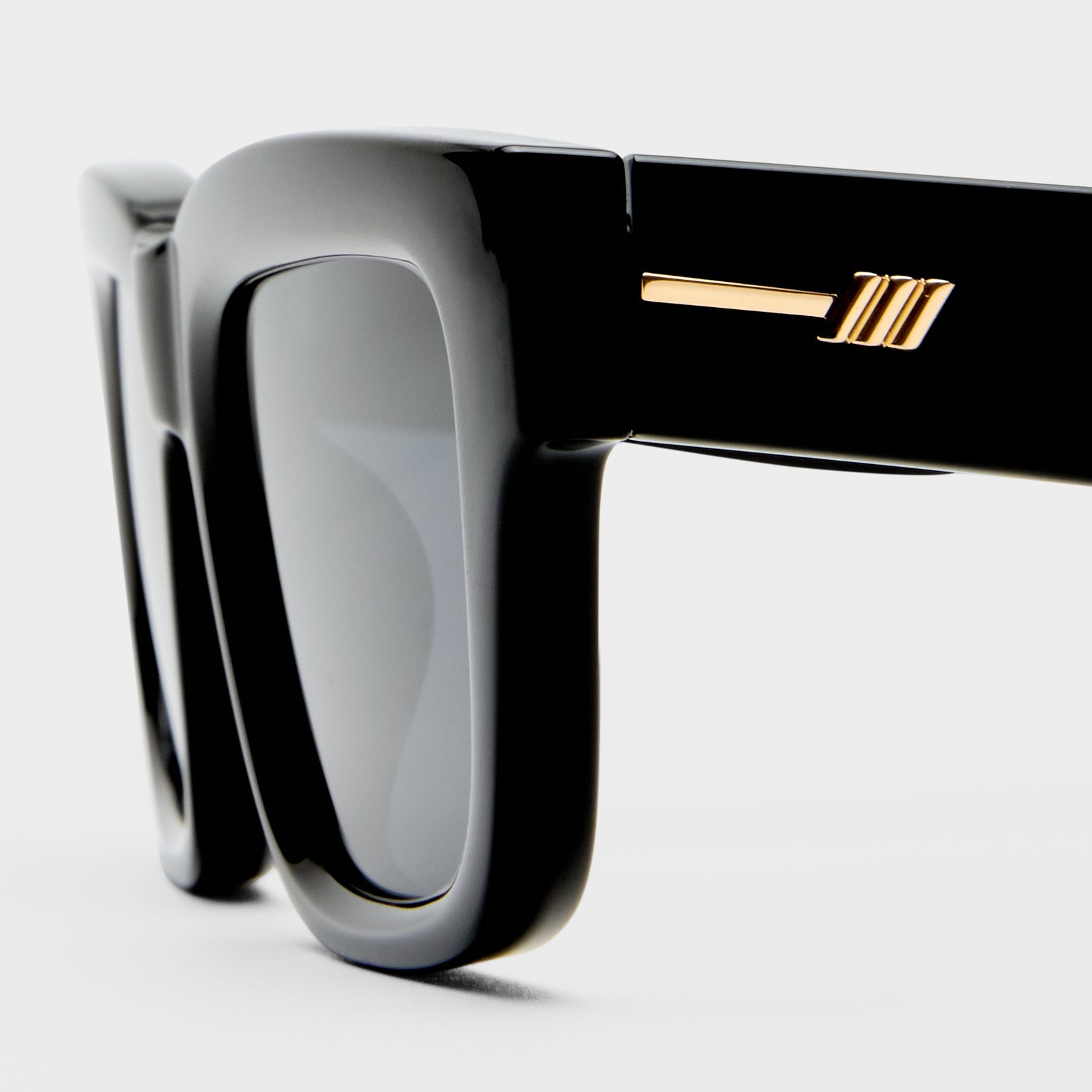 LE CASTLE reimagines a classic rectangular frame with a bold, modern edge. Showcasing our classic horizontal pin stripe flagstripehardware, this frame features thick temples for an effortless staple.