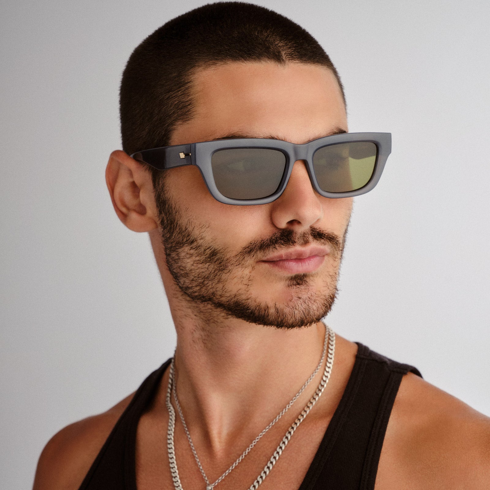LE CASTLE reimagines a classic rectangular frame with a bold, modern edge. Showcasing our classic horizontal pin stripe flagstripehardware, this frame features thick temples for an effortless staple.