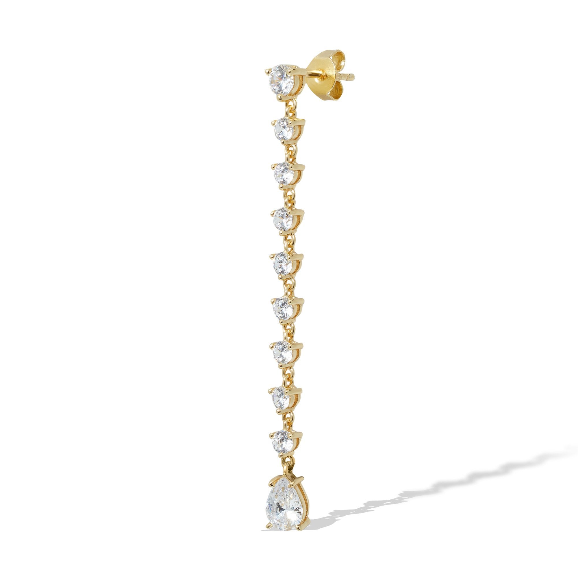 This striking dangling single earring add the perfect amount of opulence to any look. It's set with a row of white CZ stones, ending to a glistering pear-cut. The jaw-grazing silhouette moves beautifully with you.