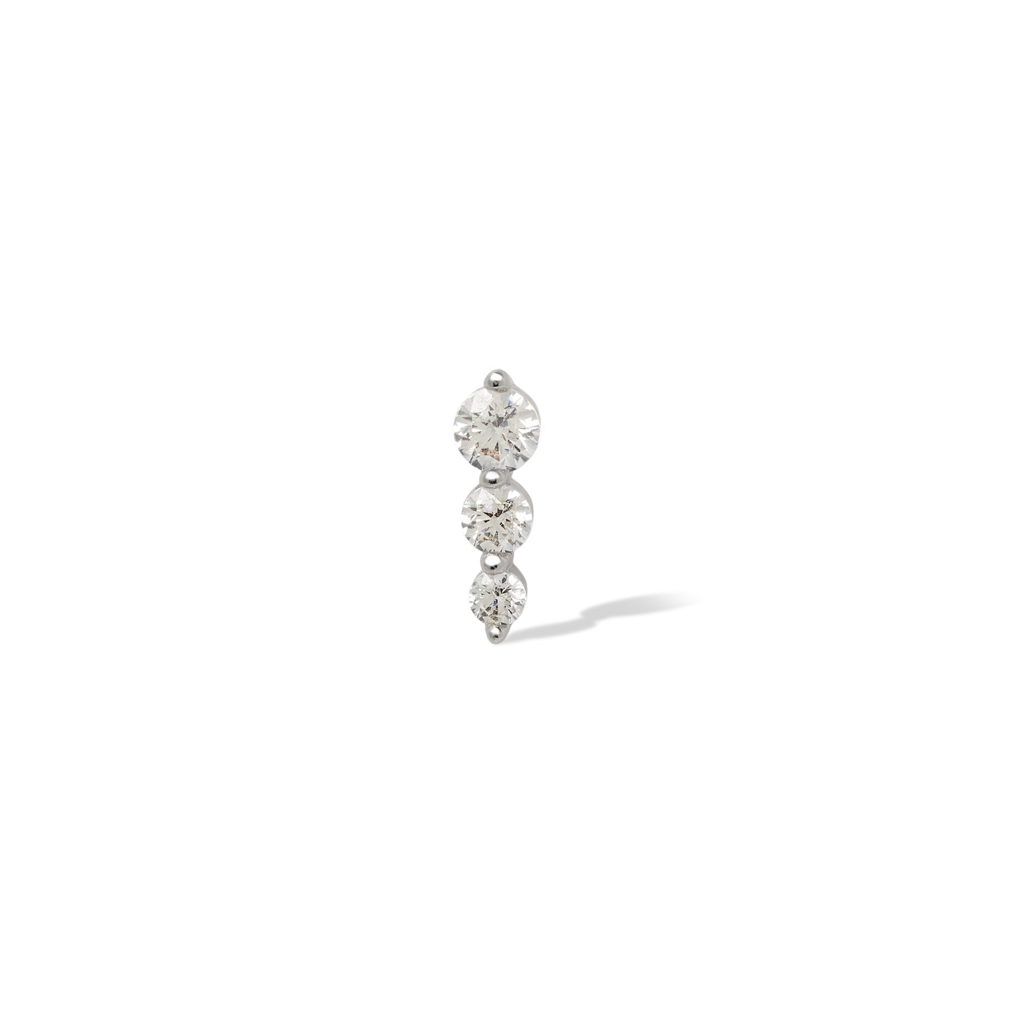 The "True Love" single stud earring is perfect for every day - wear it solo or stacked alongside equally dainty studs. Hand-cast from 925 sterling silver and plated in white rhodium, it is set with a trio of graduated shimmering white cz stones.