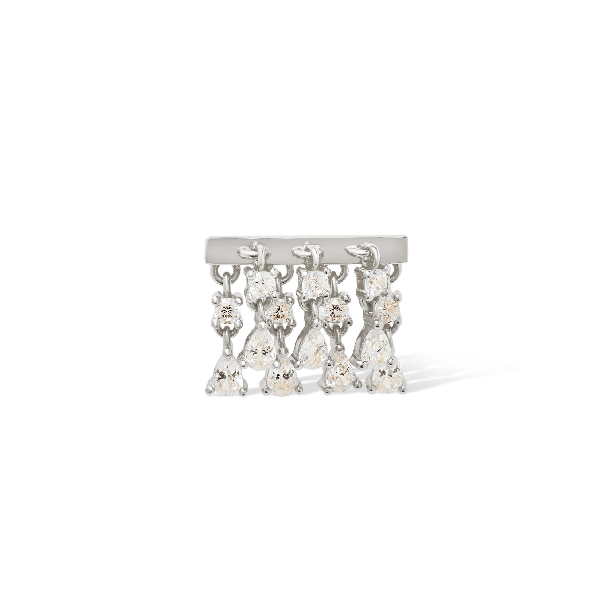This Charlie single stud earring cascade from your lobe with an illuminating array of white cz stones. Crafted from 925 sterling silver and plated in white rhodium, it is crowned with a solid bar before falling to swishy fringing in two rows. Stack yours with other pieces from our studs collection.