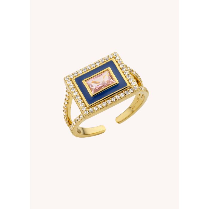 The NAVY EL PASO ring by MYA-BAY is gilded with recycled 24-carat fine gold. Featuring deep navy enamel and a contrasting center stone, it strikes the perfect balance between intensity and elegance. A structured, expressive piece — ideal for making a bold daily statement. For a graphic, confident look, pair it with the TURQUOISE EL PASO ring or the NAVY EL PASO necklace from the same line.