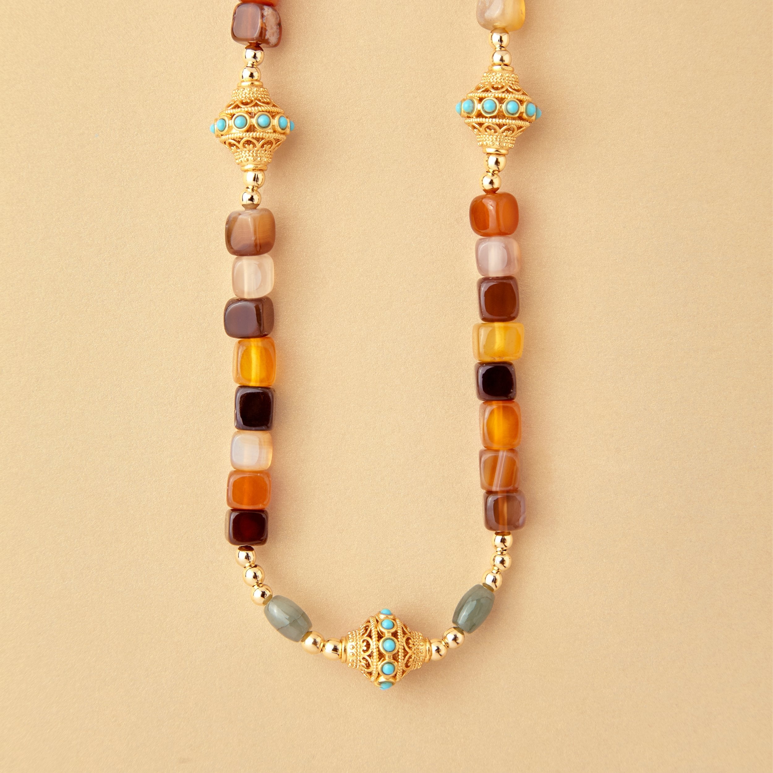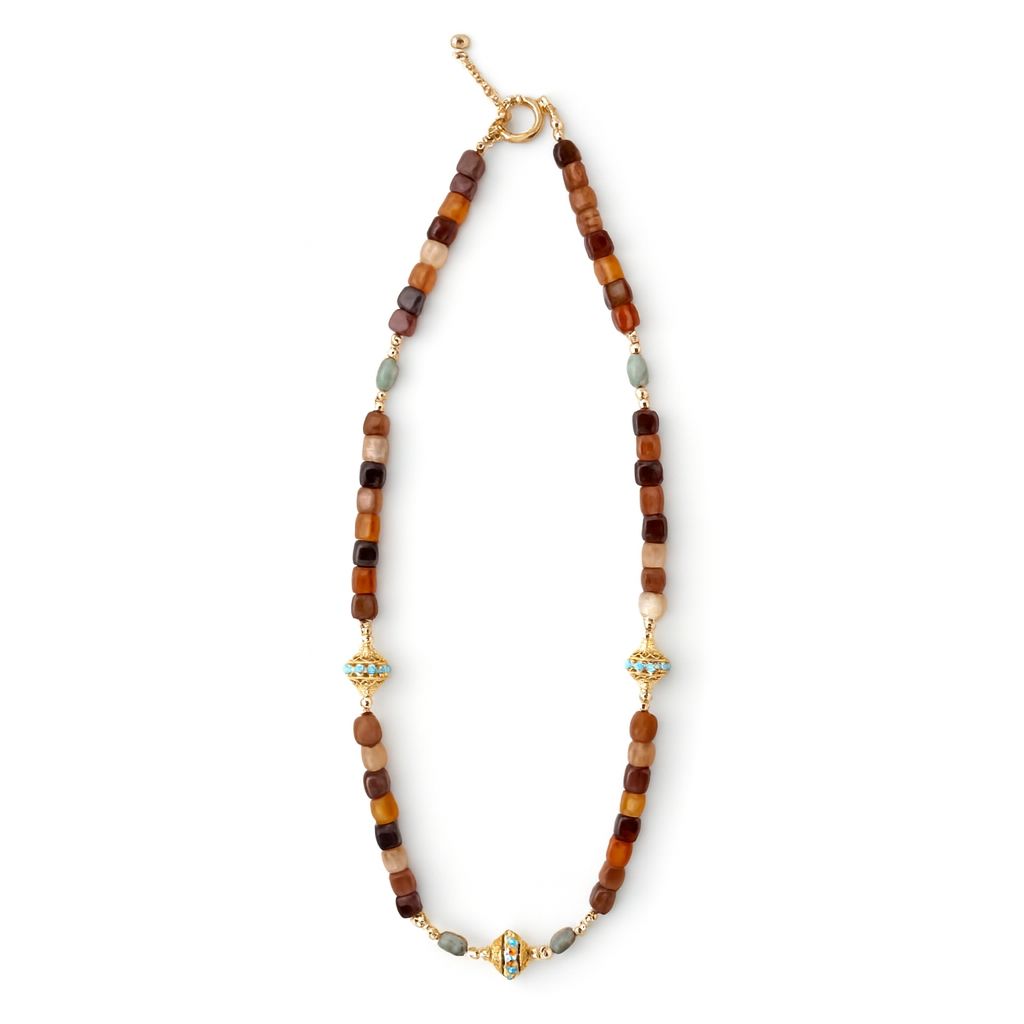 The Indian-inspired NESS necklace is an elegant creation, made with natural agate and jade stones.