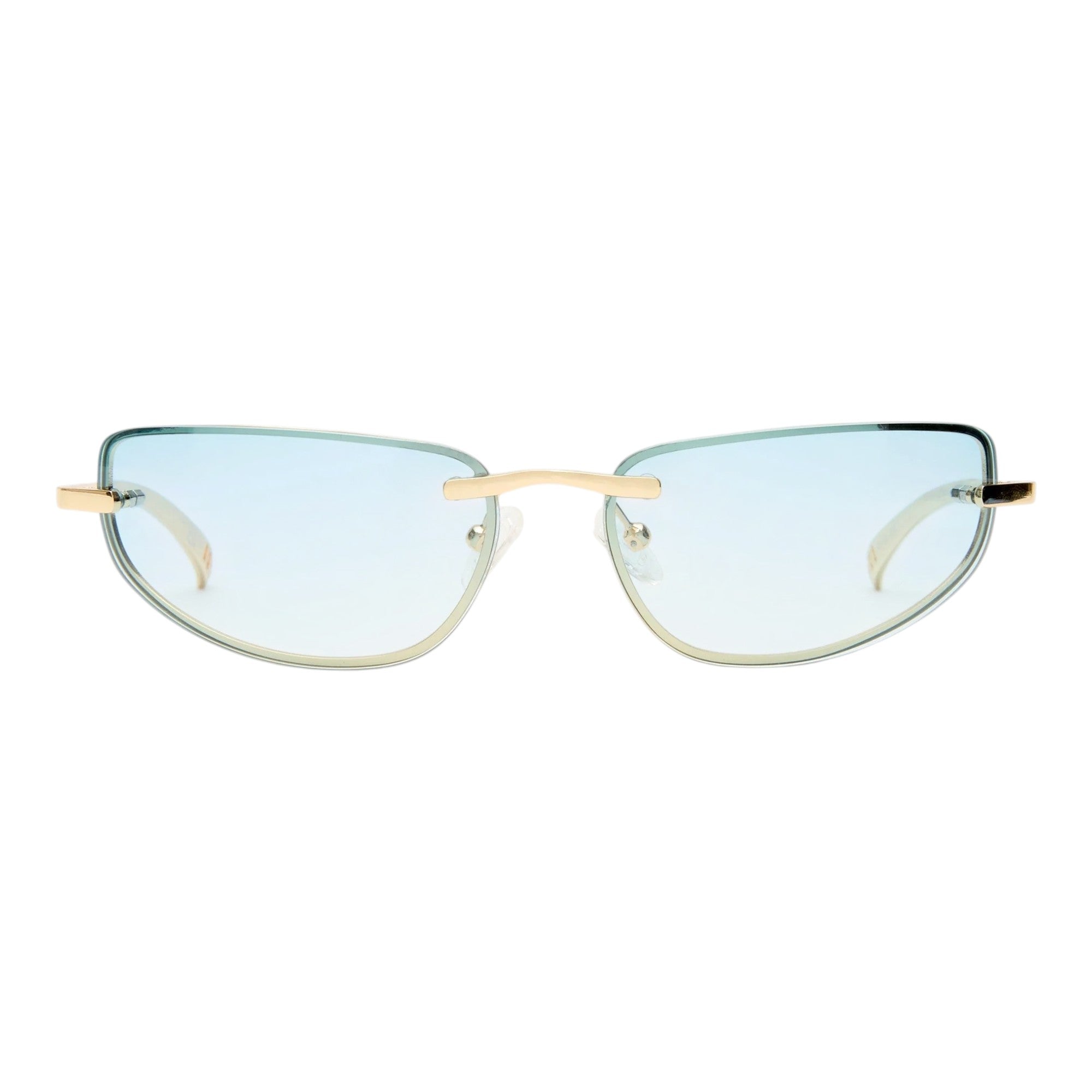 • Finished in a gold frame with sky blue gradient lenses.