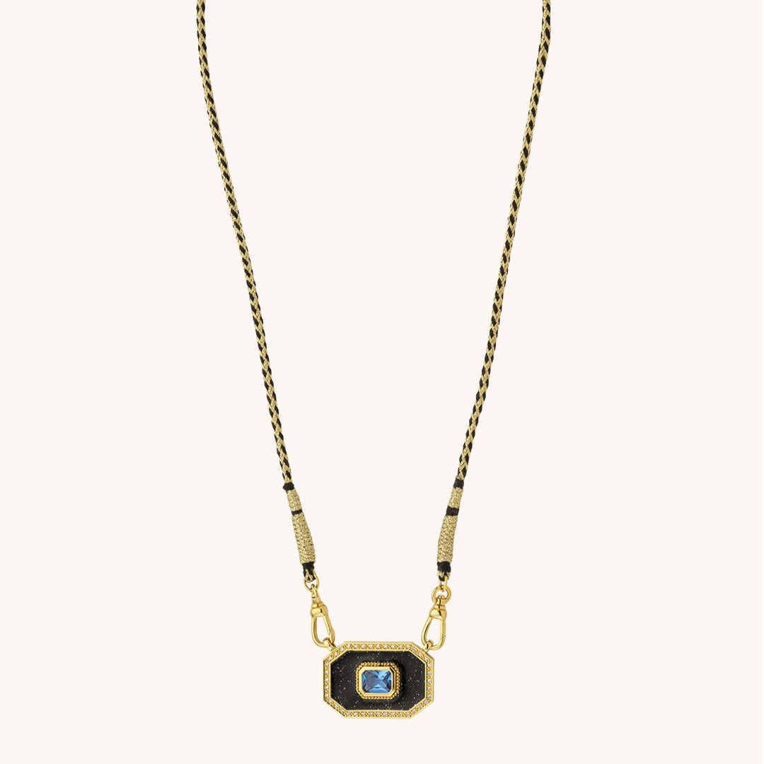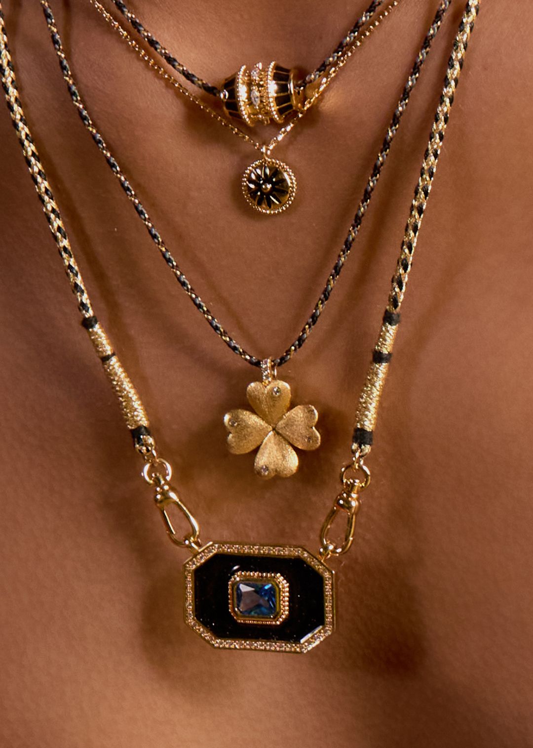 The BLACK SHINY YUCATAN necklace by MYA BAY, plated in 24-carat recycled gold, gives our iconic design a bold twist with its sparkling black enamel.