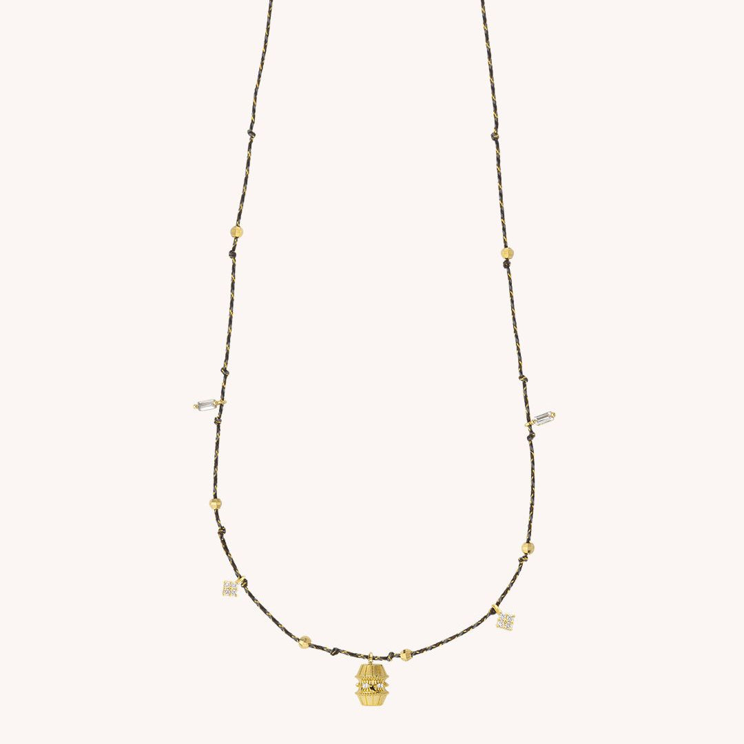 Mounted on a black cord and worn close to the neck, it makes an instant statement. A symbolic and stylish piece, rooted in freedom and full of attitude.