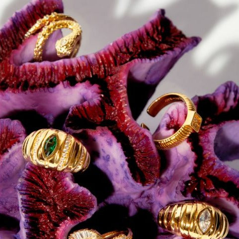 The GREEN STONE MIRANDA ring, inspired by our designer Sophie's favorite series, "SEX & THE CITY", embodies the exuberance and festive character. With its shinning green center and side gemstones, this extravagant ring reflects the bold style and vibrant personalities of the series that inspired its name. An unforgettable piece that celebrates audacity and joy