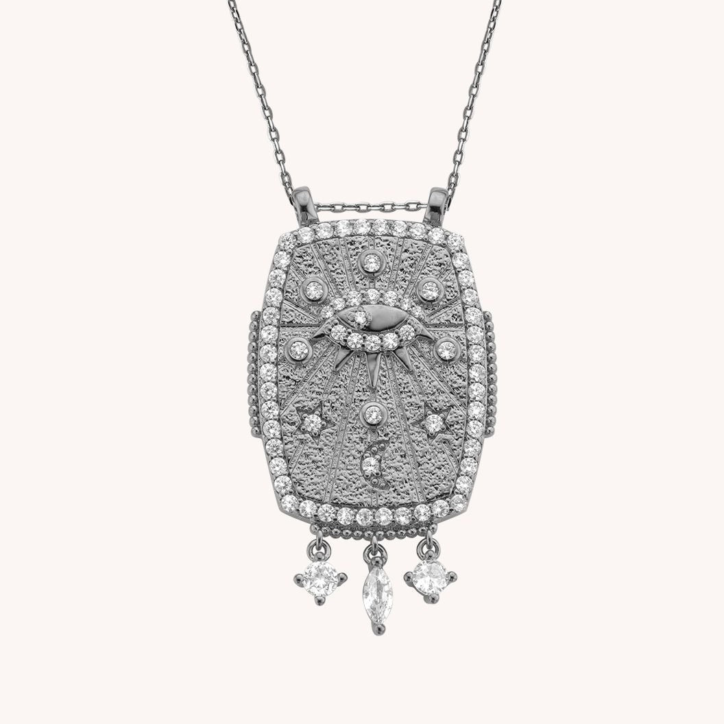 The CONSTELLATION BOHEME necklace seduces with its delicacy and elegance, highlighting precise work in its hammered texture. Three fine stones hang gracefully, framed by a delicate outline of small stones. Its charm lies in the combination of elegance and delicacy, promising to illuminate the look with stars in the eyes.