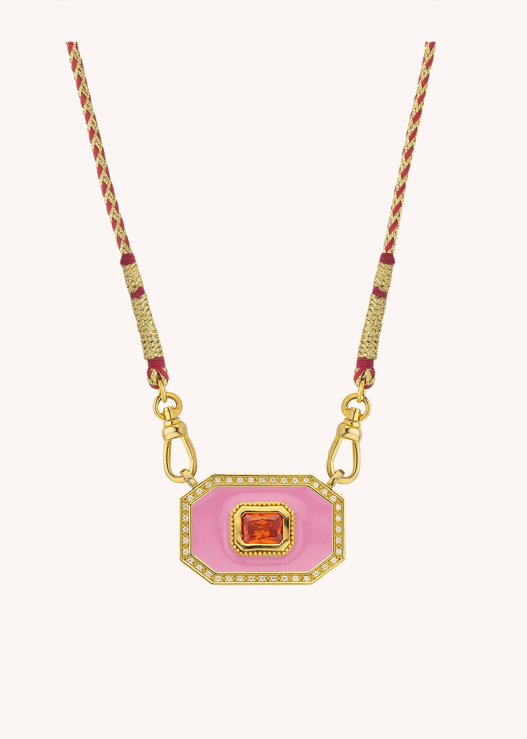 This MYA-BAY necklace, gilded with 24k recycled fine gold, combines pink enamel and a warm orange stone.