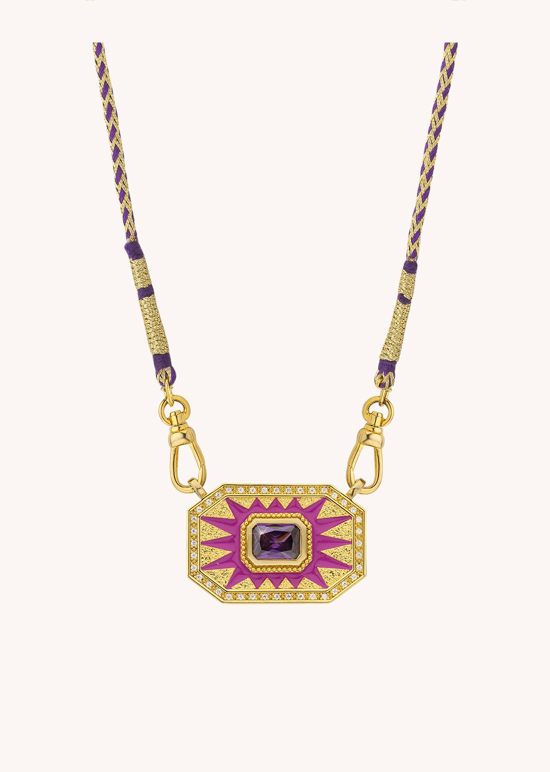 This MYA-BAY necklace, gilded with 24k recycled fine gold, combines fuchsia enamel and a purple semi-precious stone.