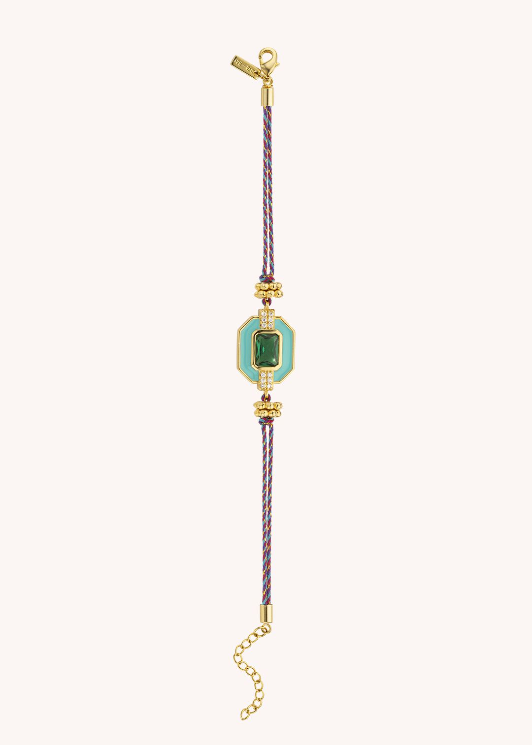 The ART DECO bracelet arrives in four pop colors: fuchsia, white, turquoise, or purple enamel.