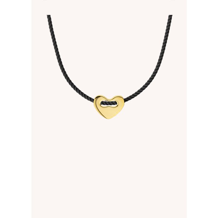 The BLACK CORAZON necklace by MYA-BAY pairs sleek design with strong energy. Its black cord contrasts beautifully with the heart gilded in recycled 24-carat fine gold — a duo that works across all moods and seasons. With a 38 cm + 5 cm extension chain, wear it as a choker or slightly lower — it’s all about your vibe. Pair with the BLACK CORAZON bracelet for a powerful duo, or contrast it with the brighter versions from the collection.