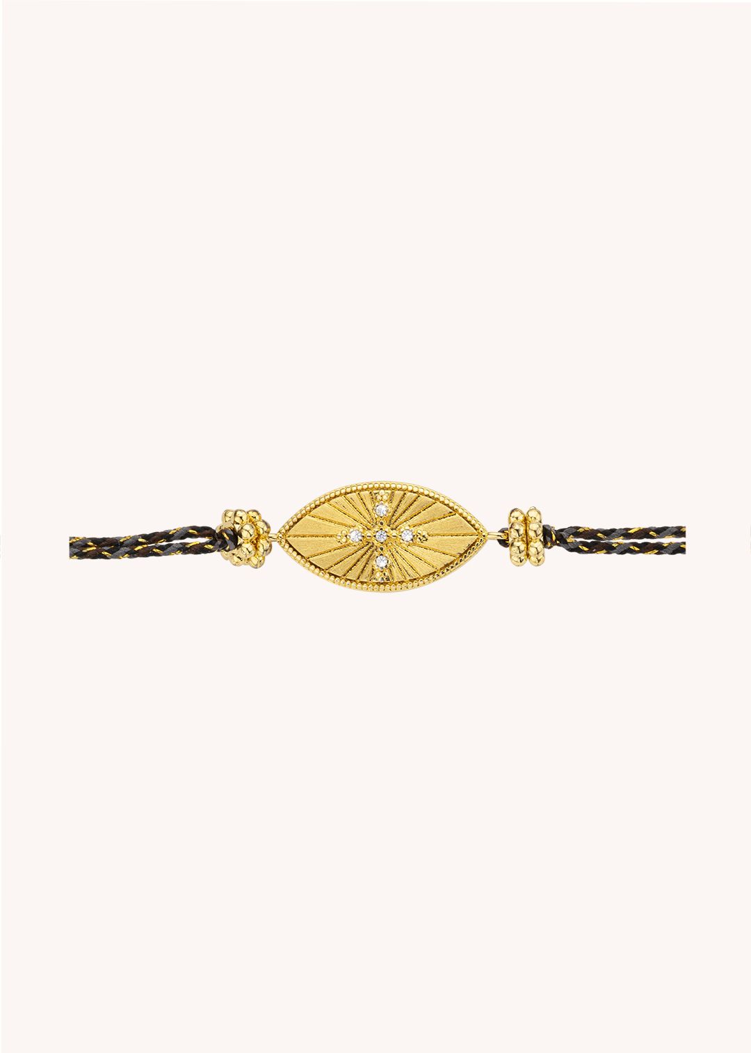 Set on a black cord woven with golden threads, it follows the signature IRIS silhouette — inspired by the protective eye and the boxer’s belt. These two powerful shapes express the full spirit of the ROUND ONE collection: intuition, strength and style.