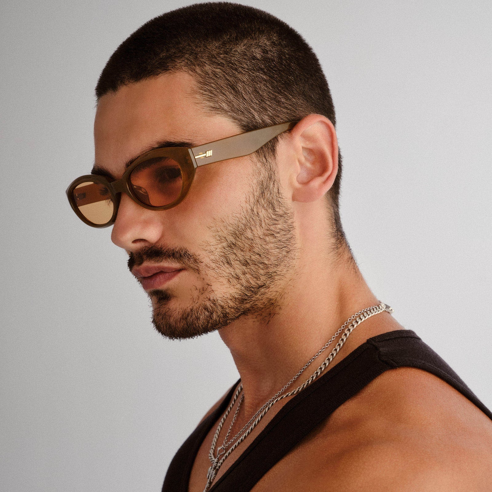 A modern reinterpretation of ‘90s oval frames, LE BIJOU features bold contours and a sculpted silhouette, balancing sleek elegance with a striking edge. Designed for wider faces, this frame features our classic horizontal pin stripe flagstripe hardware and is a statement in simplicity.