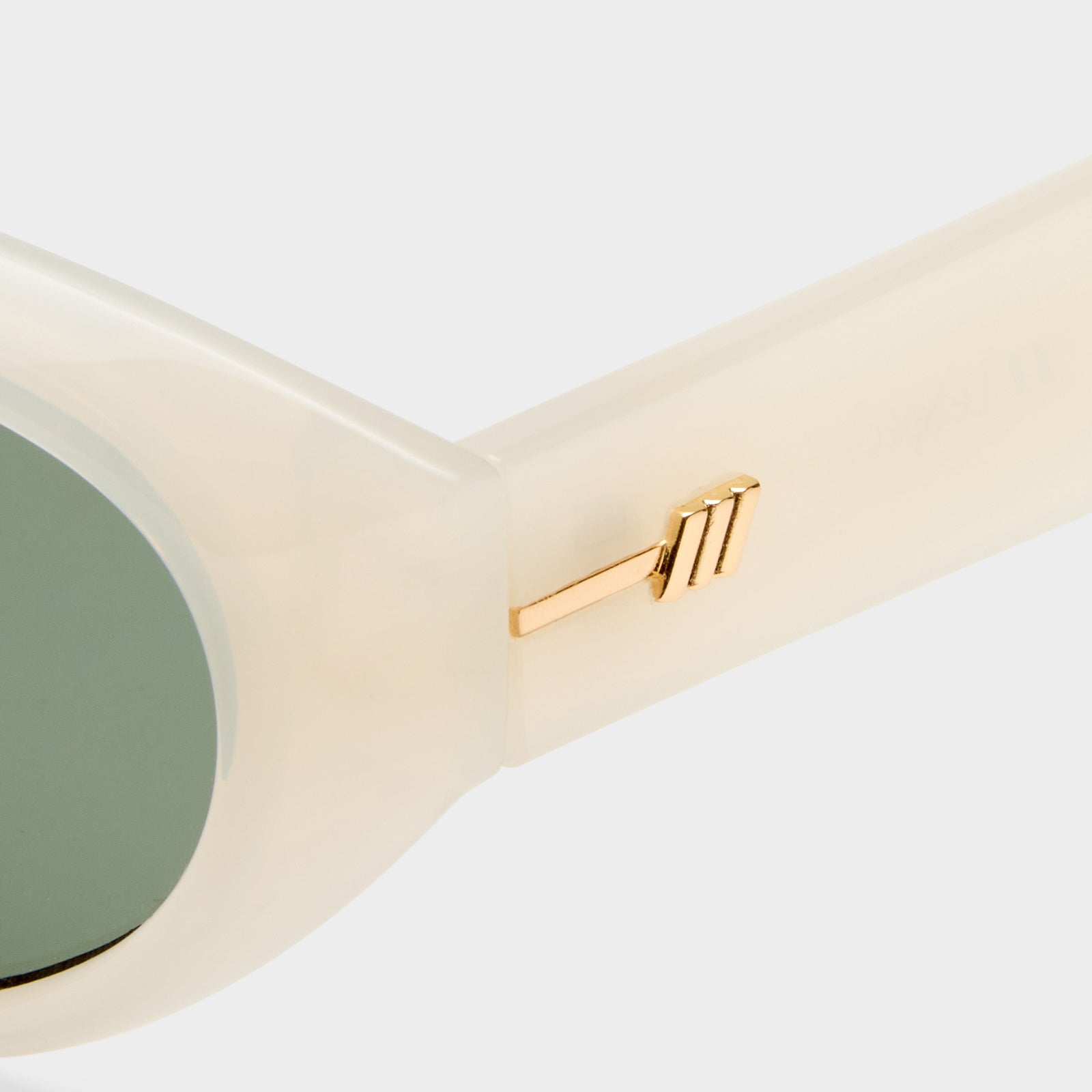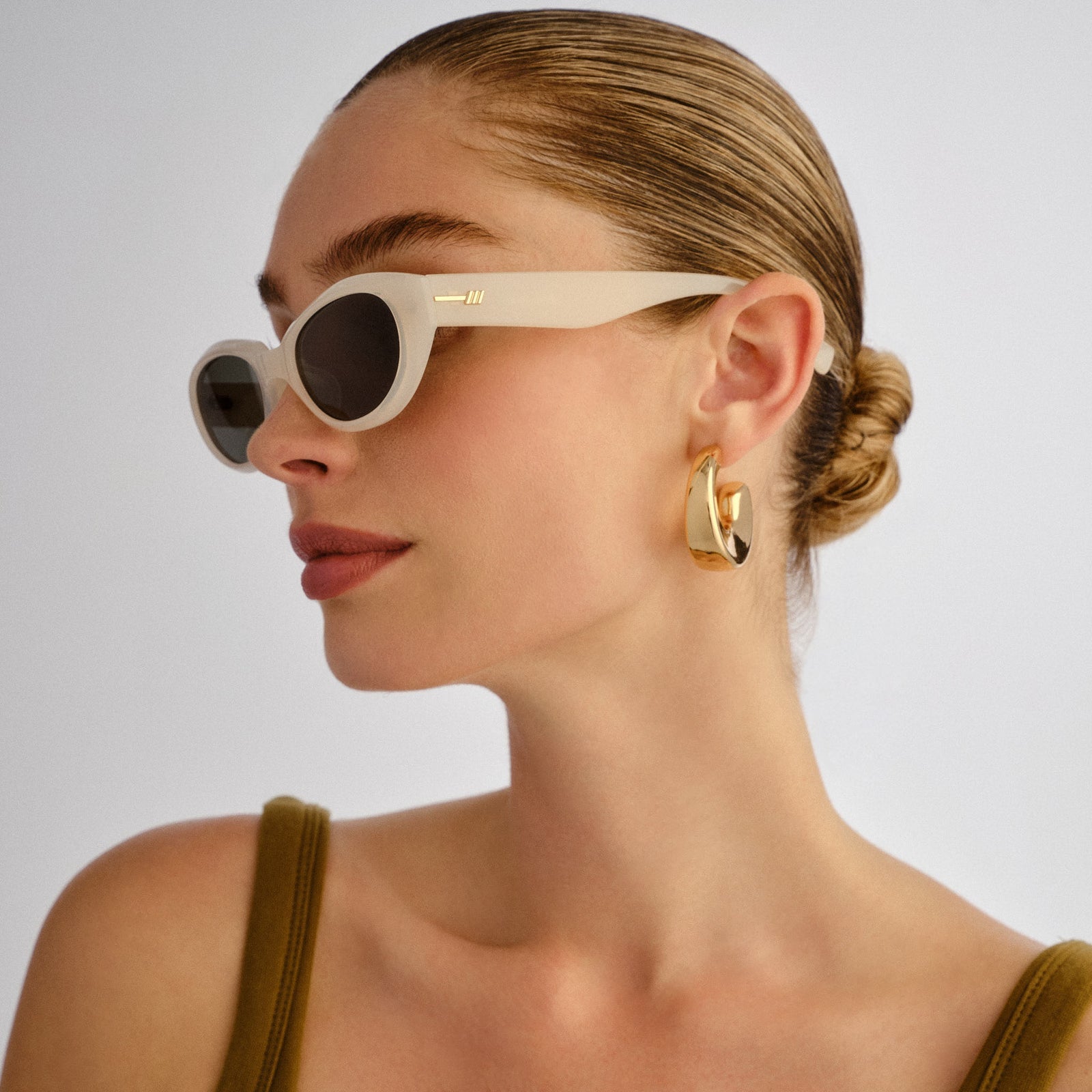 A modern reinterpretation of ‘90s oval frames, LE BIJOU features bold contours and a sculpted silhouette, balancing sleek elegance with a striking edge. Designed for wider faces, this frame features our classic horizontal pin stripe flagstripe hardware and is a statement in simplicity.