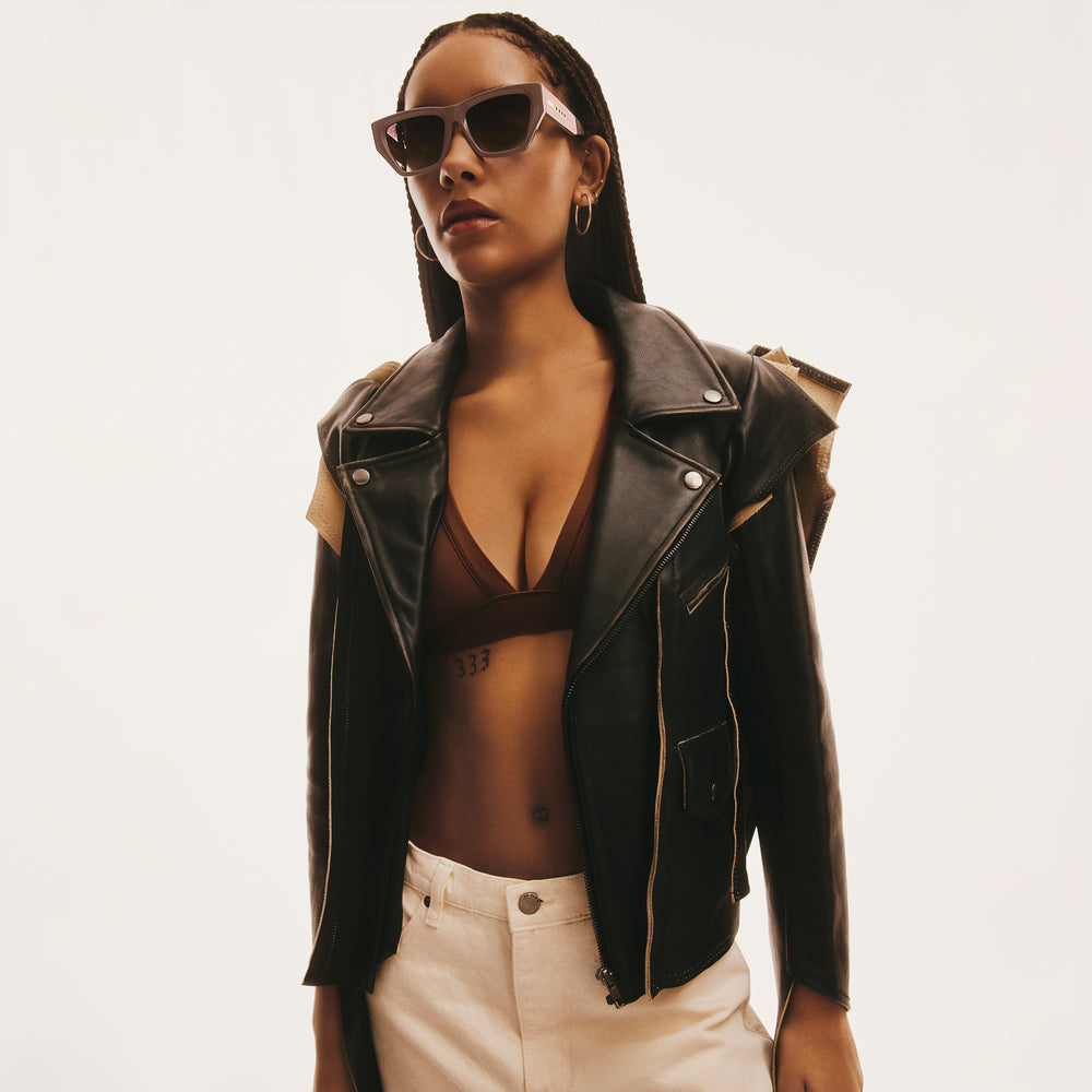 Sorry, not sorry, in NO APOLOGIES. This stylish, angled square features grommet detailing for an edged-up fashion moment.