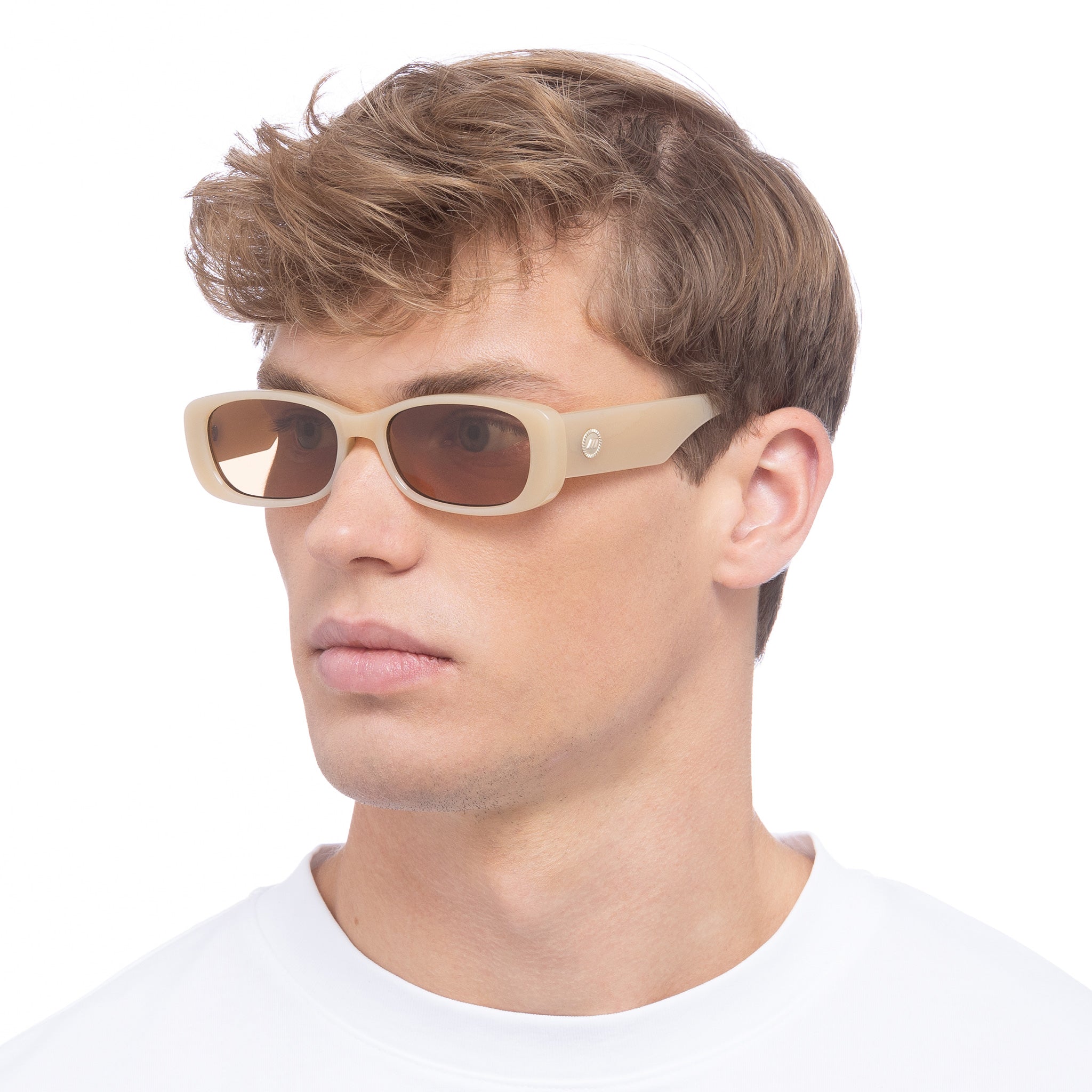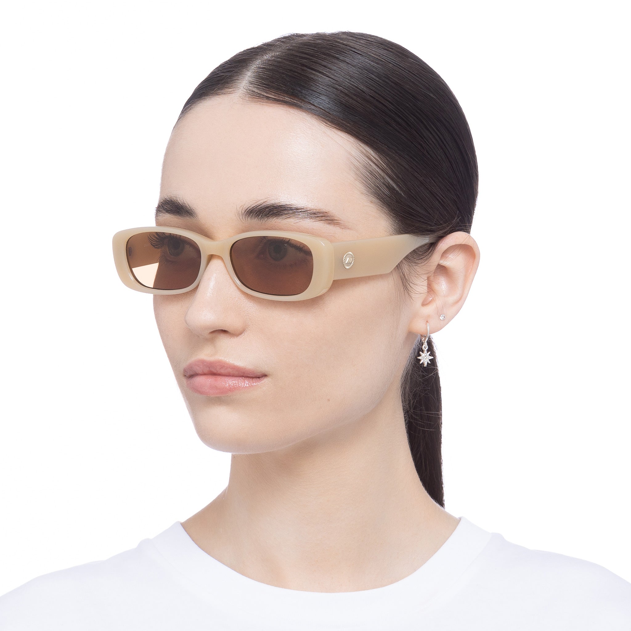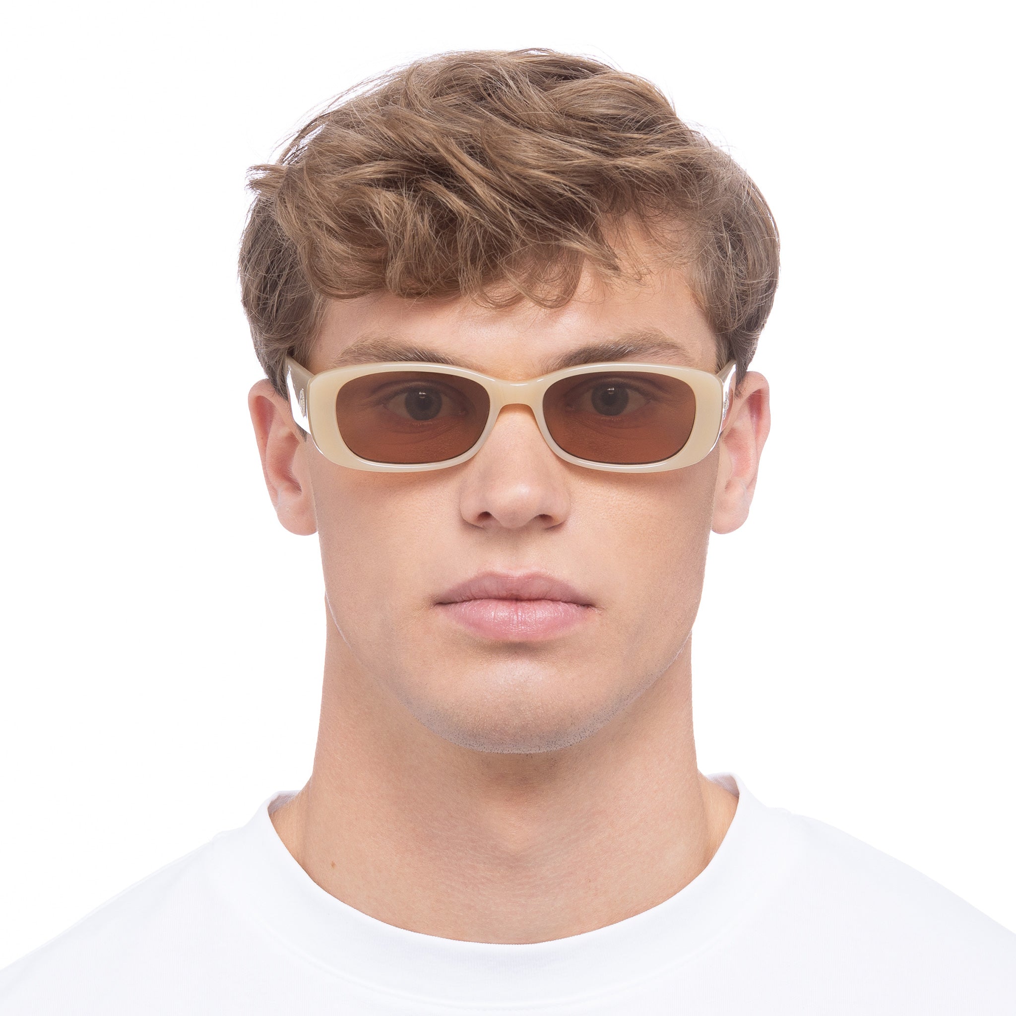 Finished in a milky nude frame with tonal light brown lenses.
