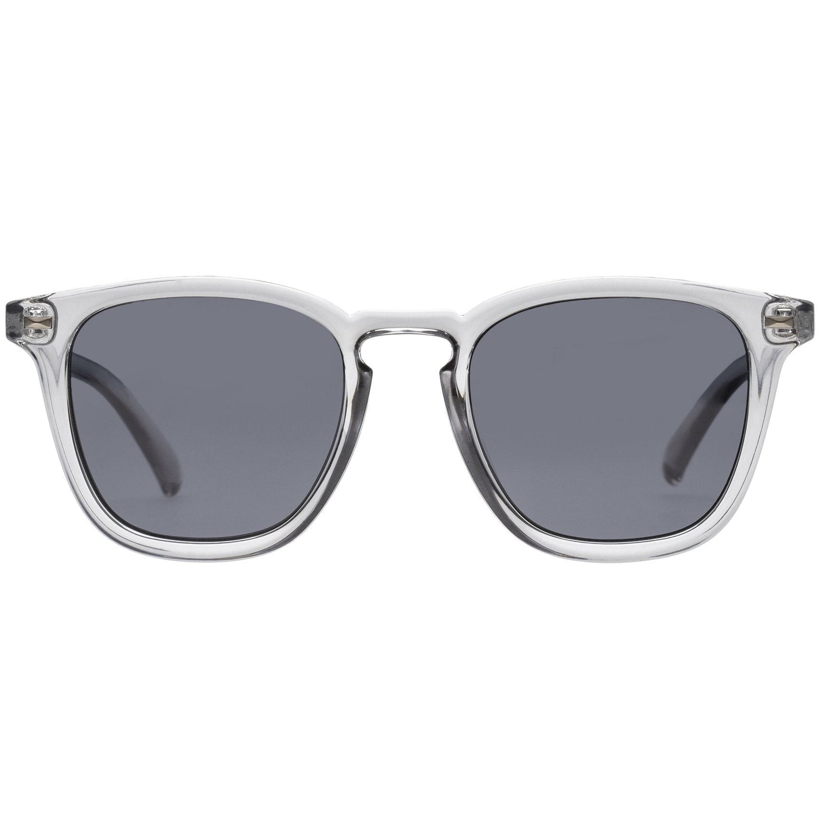 This modern rectangular rework on a fifties shape is the sharpest look this season, and features classic rivet detailing. Finished in a limited edition translucent crystal frame.