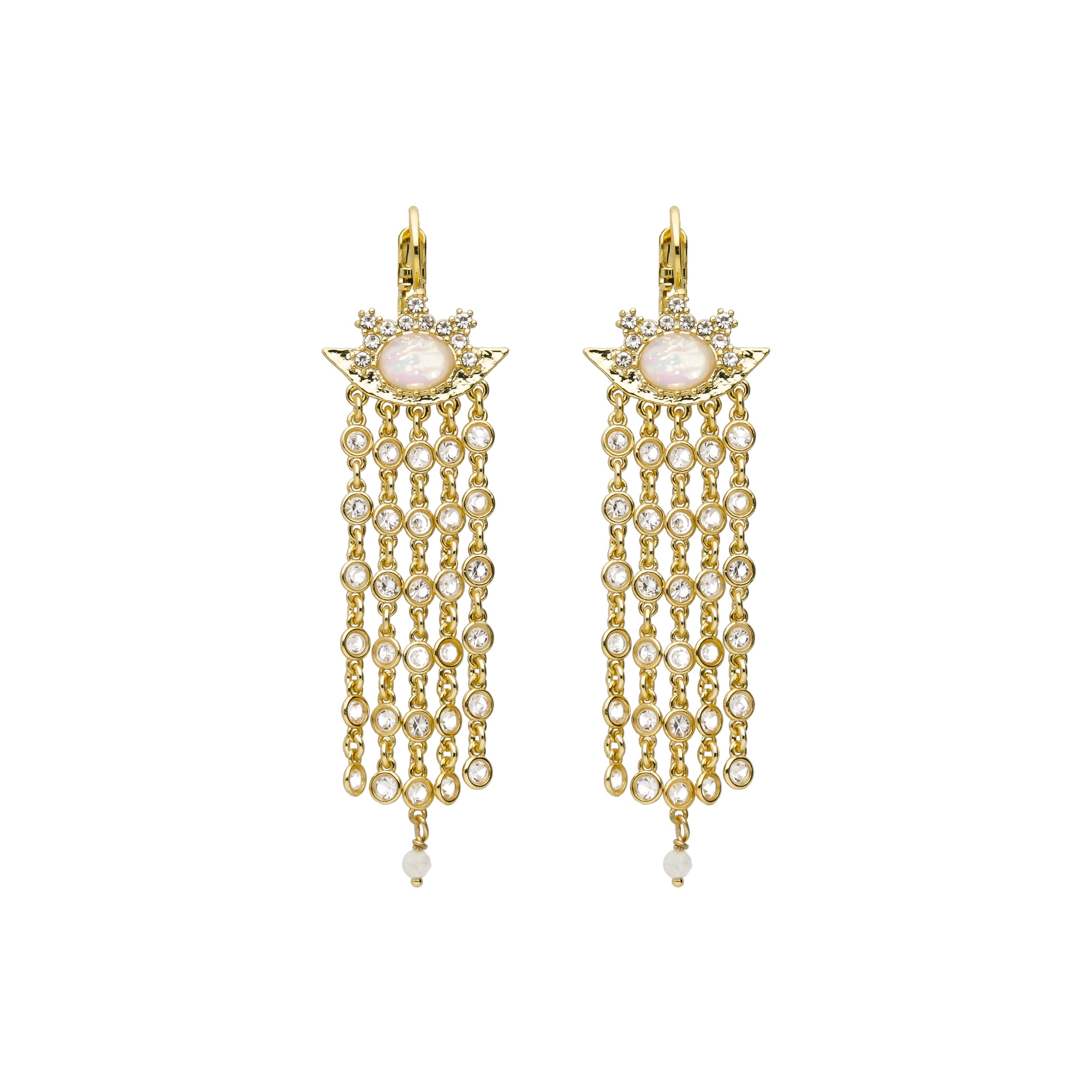 The sunny masterpiece made in Hipanema! Totem earrings mounted on sleepers for pierced ears, gilded with fine 14-carat gold, on which we find three elements: a golden buckle head delicately worked in a vintage style, adorned with a black onyx-effect cabochon, overlooking a medallion crafted, recomposed of Miyuki beads in neon orange, coral, turquoise, black, red and pink tones, alternating with lines of glitter rhinestones. A third round and ornate piece, like a solar disk in rainbow tones, completes the composition. We love the play of pearl cascades on either side of the jewel, in a dynamic and joyful Rainbow gradient. The exceptional earrings, which transform every occasion into a great occasion.