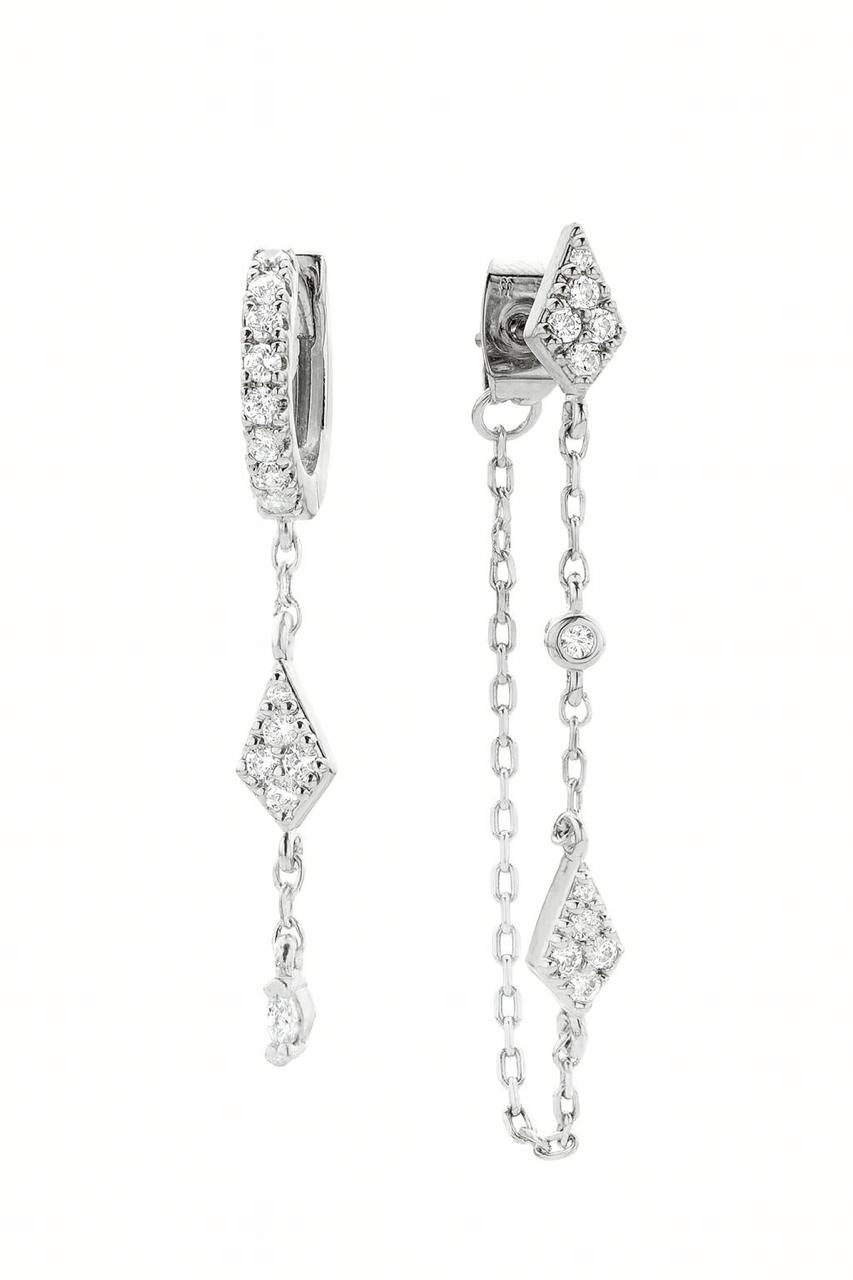 Mismatched, they echo each other without being identical. Their delicate diamond shapes draw fine, graphic lines brought to life with gentle movement and softness, twisted by the edge of their design.