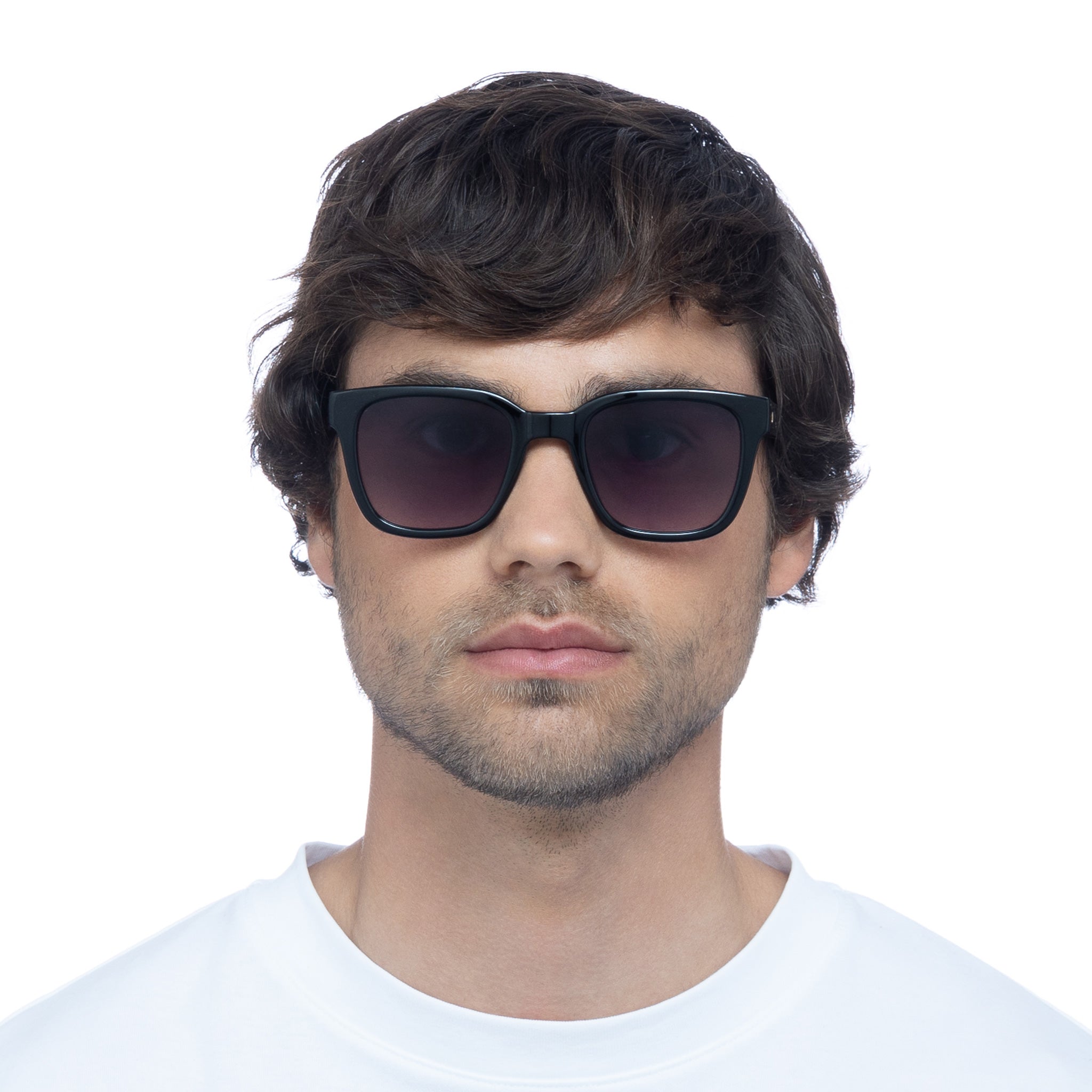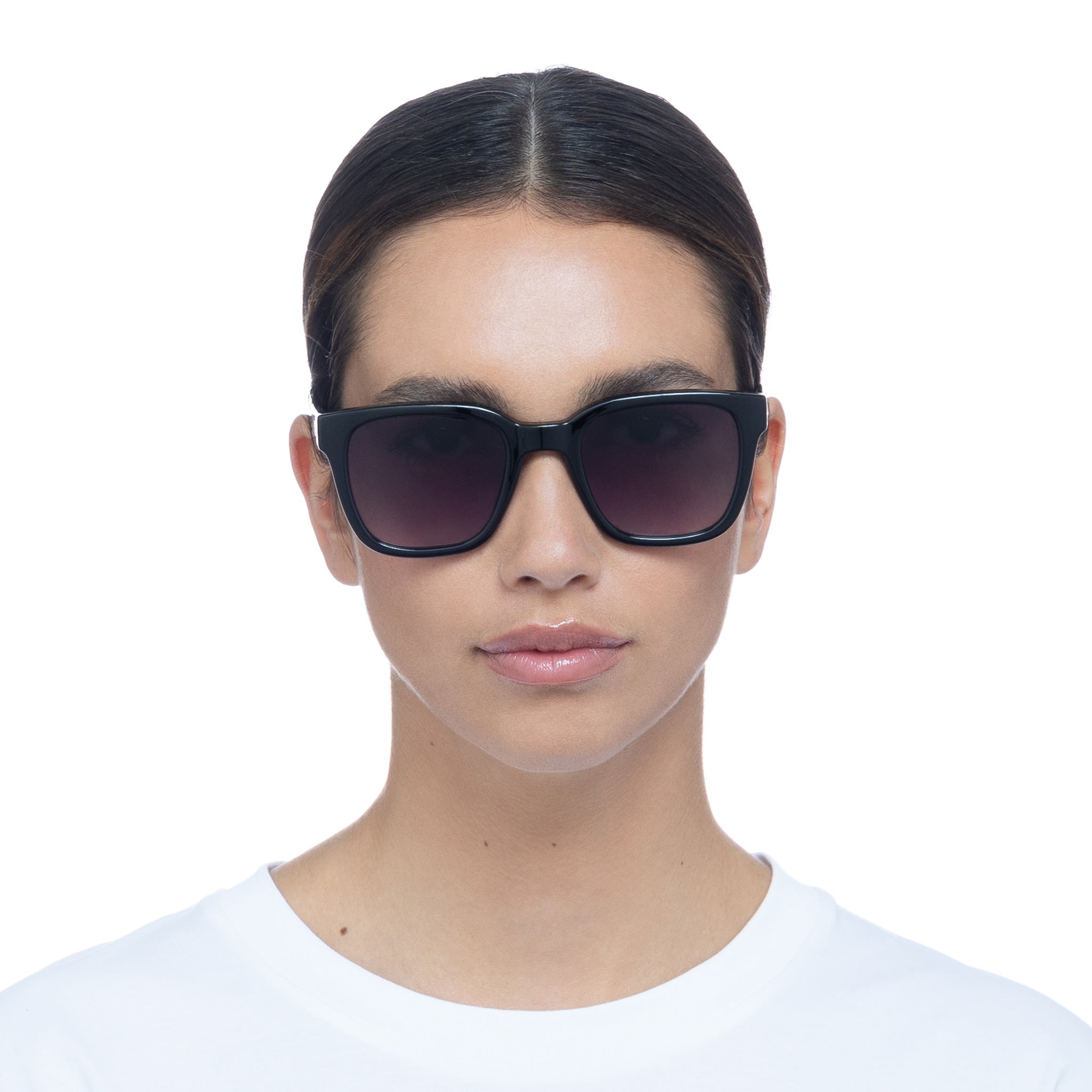 Finished in a classic black frame with dark gradient lenses.