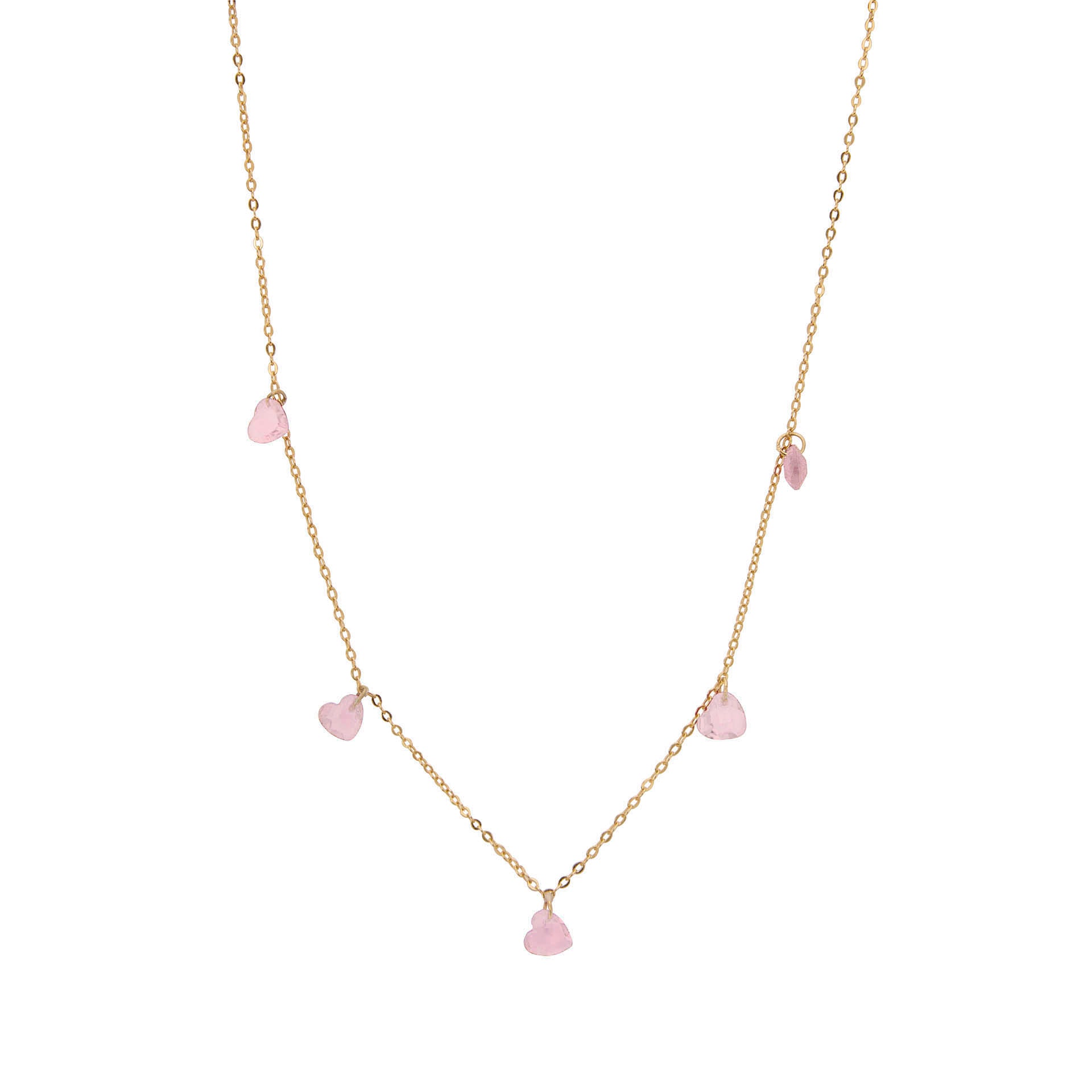 Fall for the Petit Cœur Necklace, a delicate and romantic piece of jewelry designed to enhance any outfit with a subtle touch of elegance. Its fine chain in 18-carat fine gold-plated brass (1 micron) is adorned with five small olive green zircon hearts, bringing a soft light and a pinkish hue that is sure to seduce.