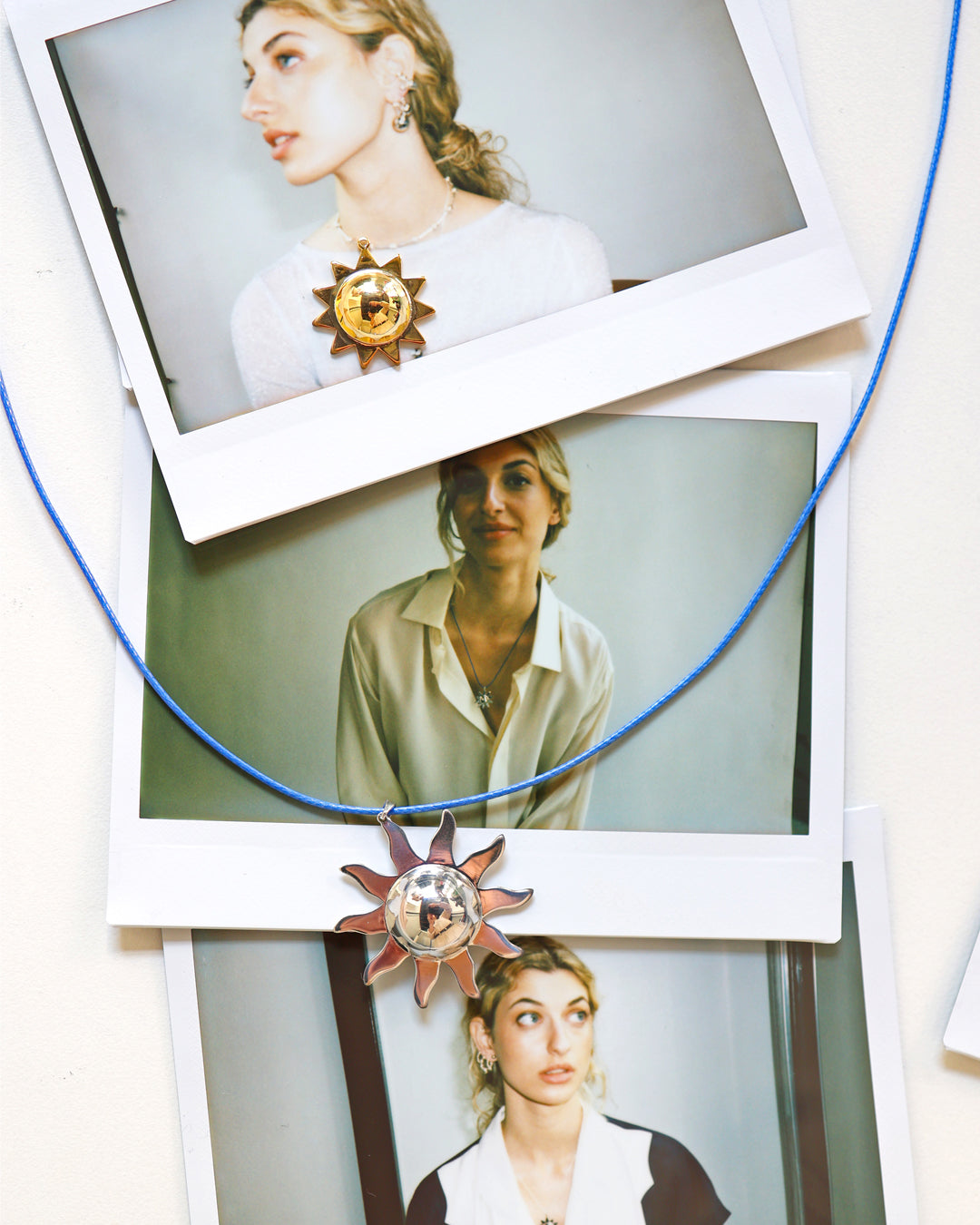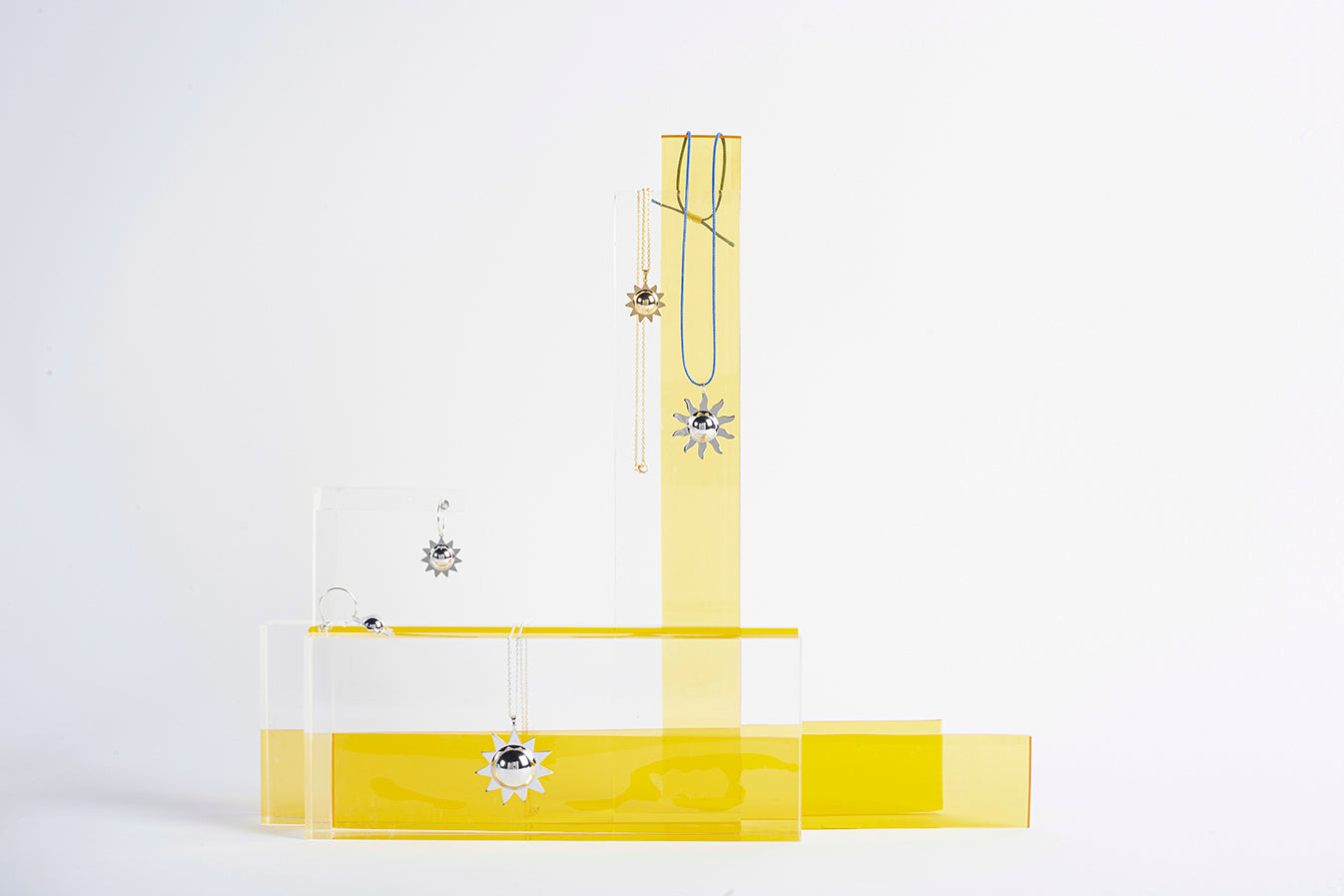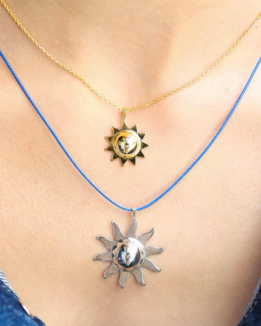 The Sun collection has been produced with natural silver and it is hand crafted. It's inspired by the sun’s infinite light rays and thus is made of 100% reflective materials.