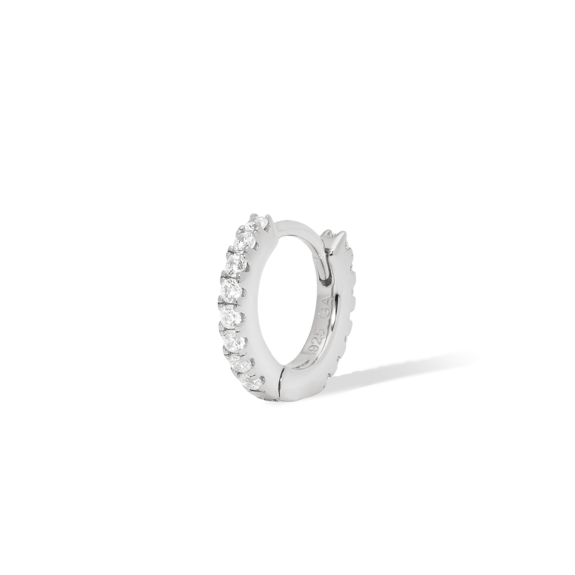 This timeless 925 sterling silver, white rhodium-plated single earring is the absolute essential to start building your GA Ear Story. It's crafted to a small hoop shape and adorned with glistering white CZ stones along the outer rim, front and back. Stack it with other pieces from our Ear Stories Collection.