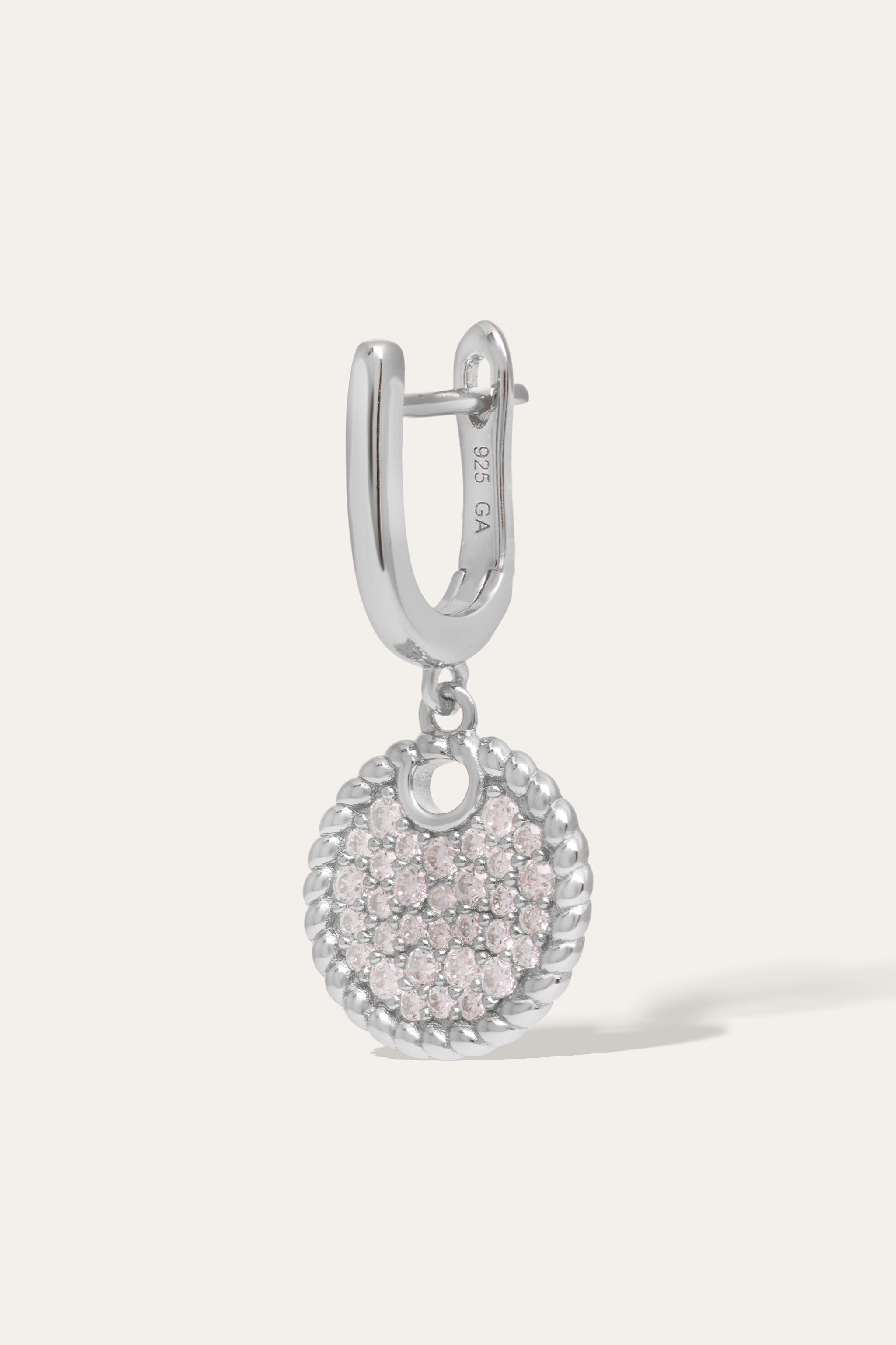 The pave disc hanging completes this versatile and timeless piece.