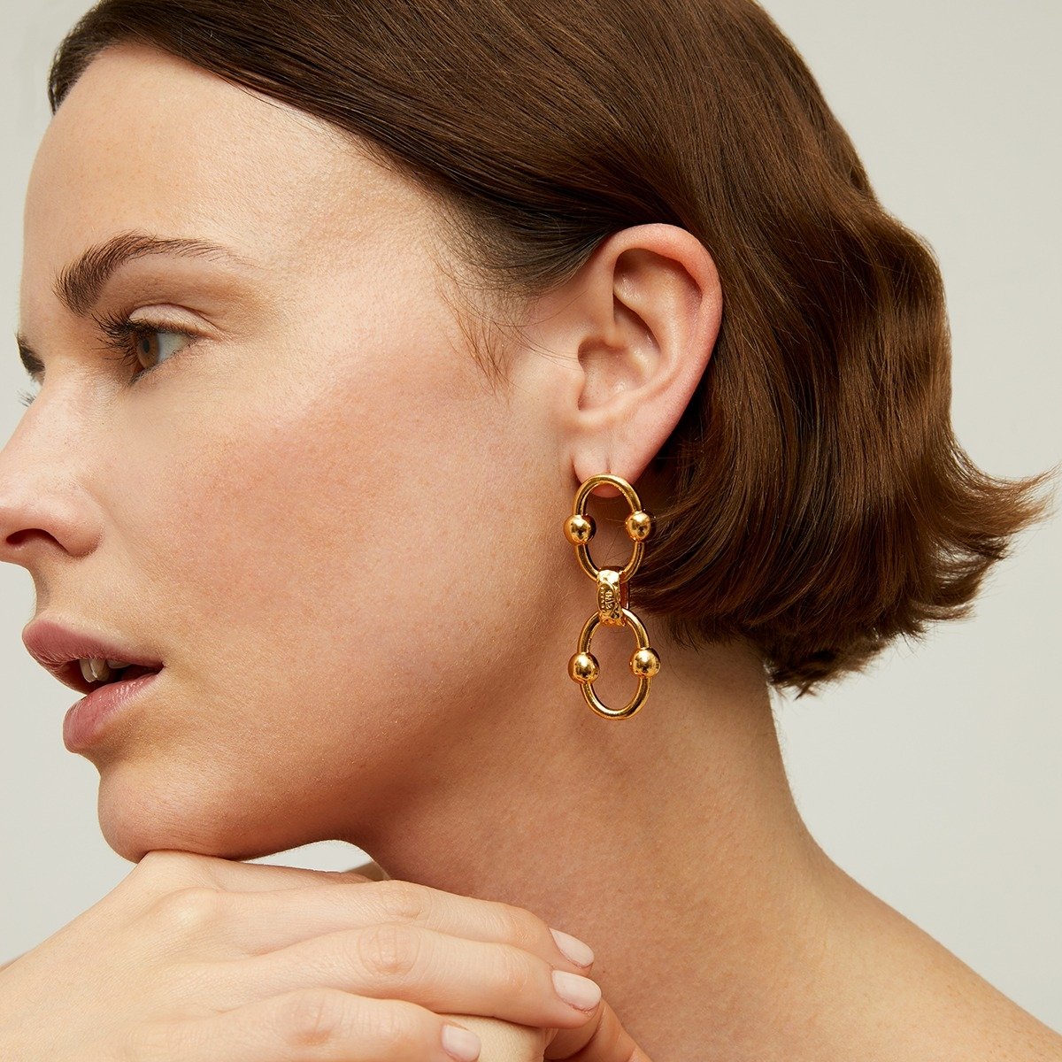 Gold plated earrings made of fine links worked and decorated with pearls.