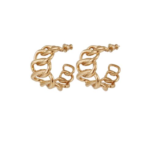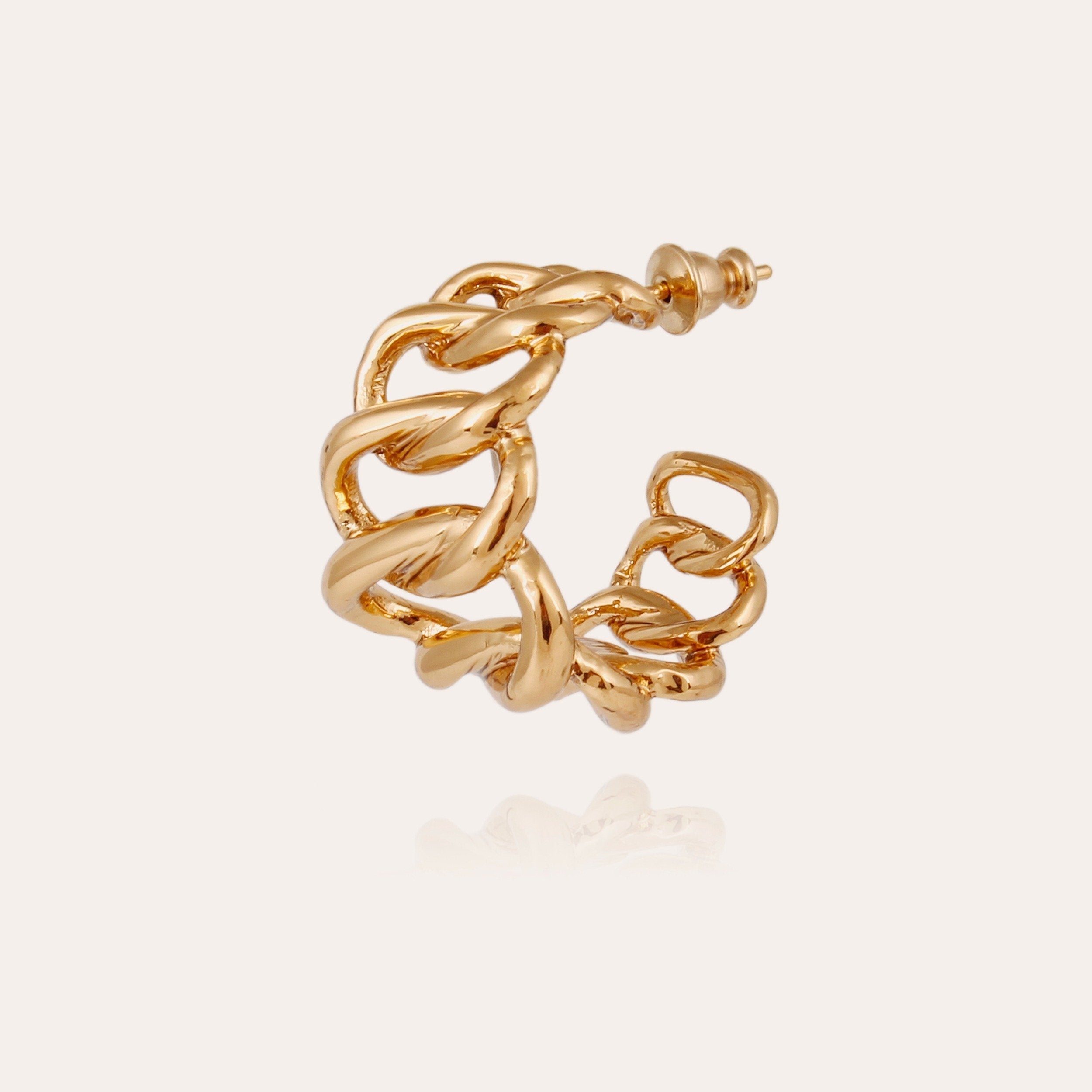 Bronx gold plated hoop earrings, inspired by a gourmette chain, with audacious intertwined curves.