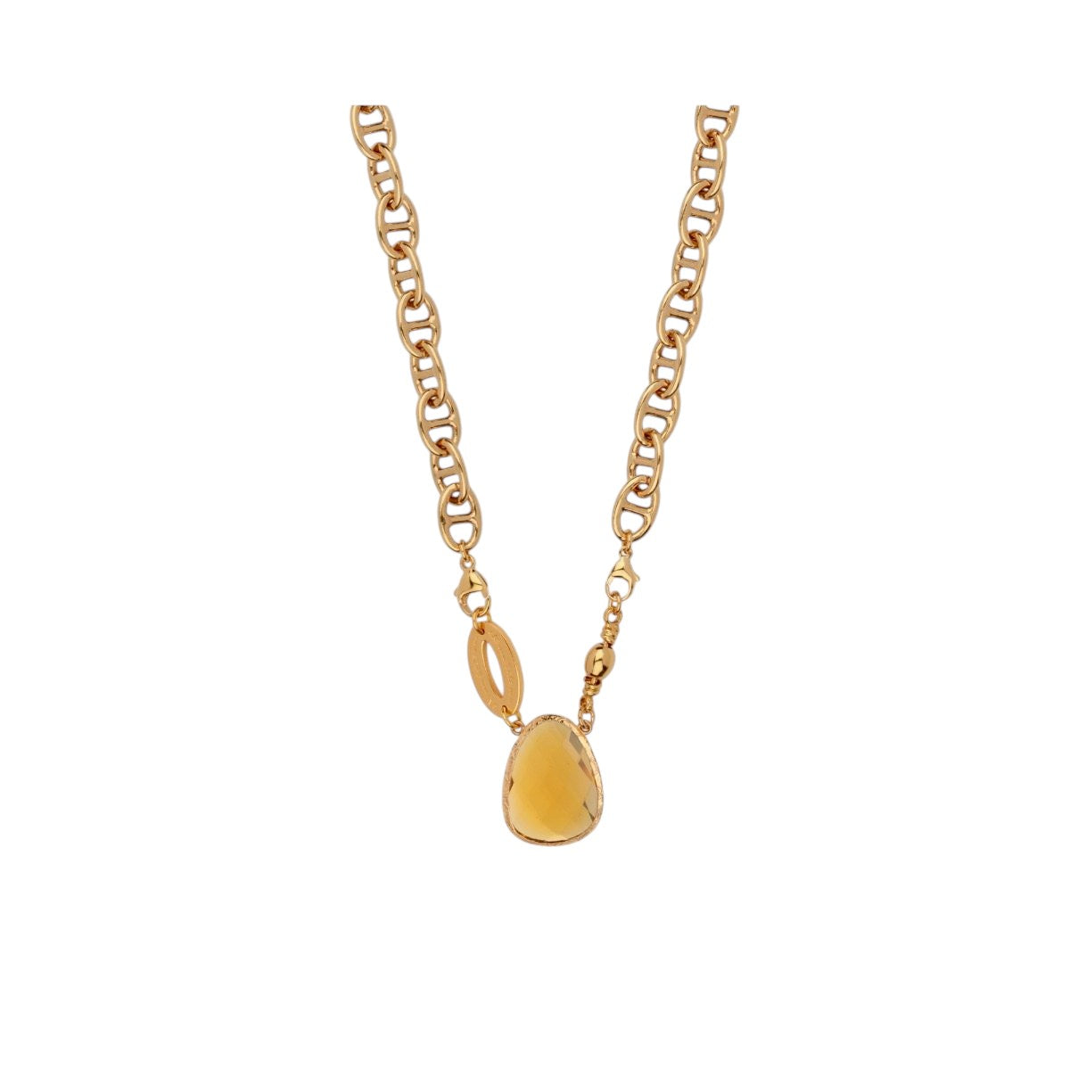 Gold plated necklace composed of one yellow Hematoide gemstone that can be change.