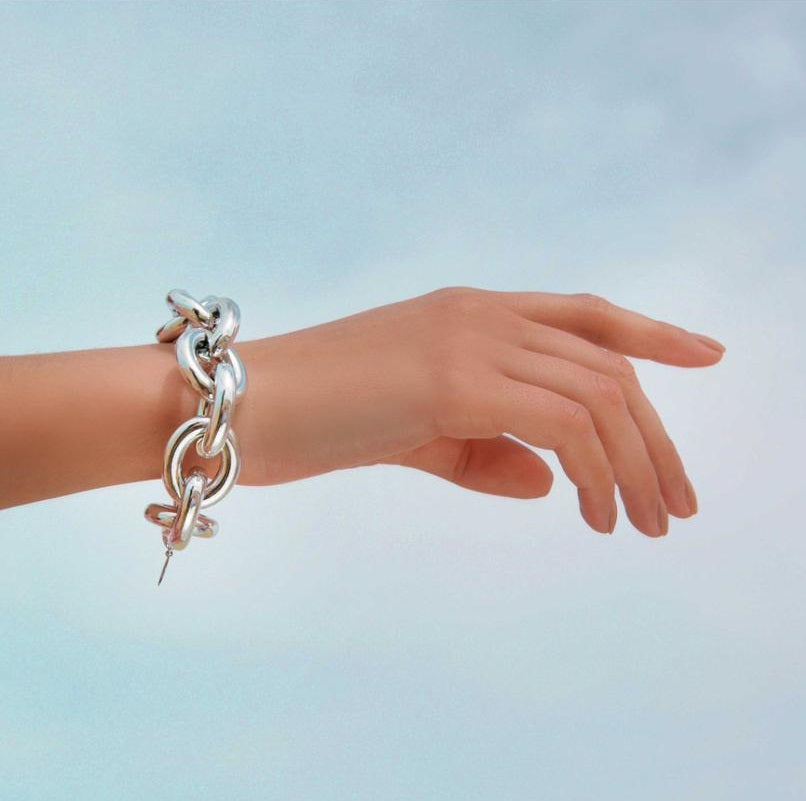 Chunky mesh bracelet in aluminum and colored veneer CCB.