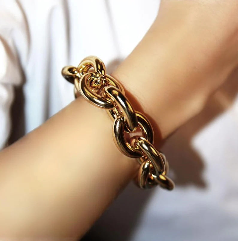 Chunky mesh bracelet in aluminum and colored veneer CCB.