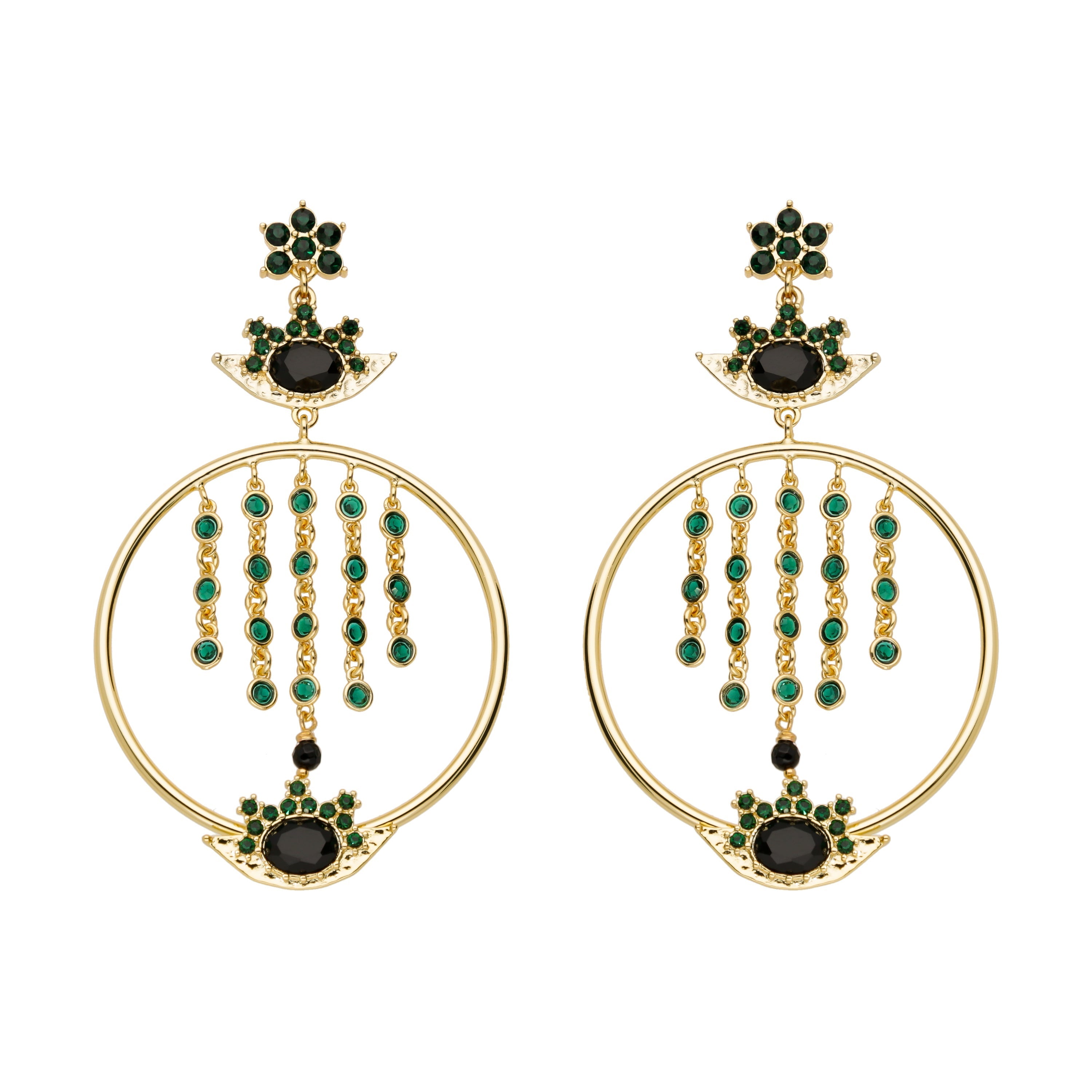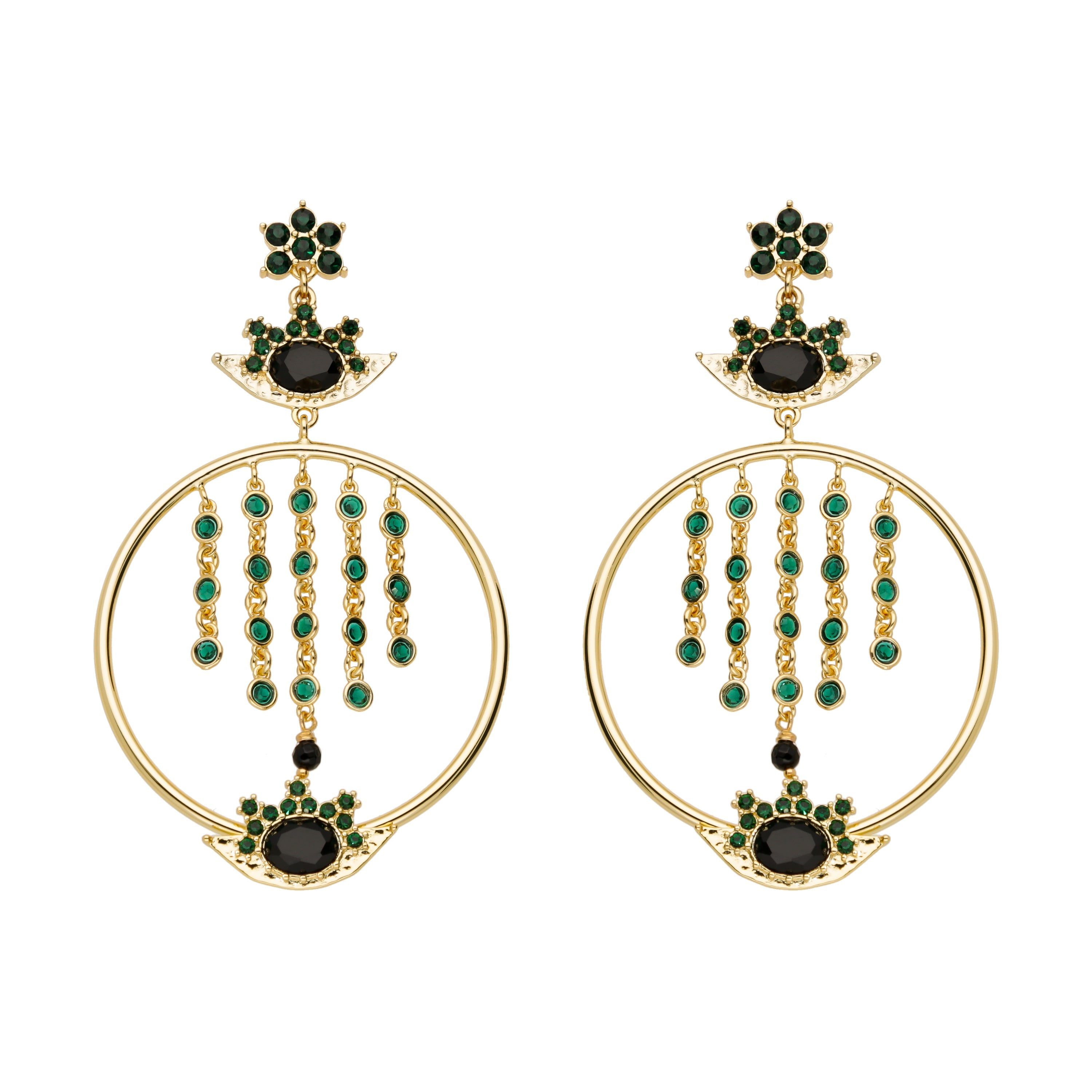 The sunny masterpiece made in Hipanema! Totem earrings mounted on sleepers for pierced ears, gilded with fine 14-carat gold, on which we find three elements: a golden buckle head delicately worked in a vintage style, adorned with a black onyx-effect cabochon, overlooking a medallion crafted, recomposed of Miyuki beads in neon orange, coral, turquoise, black, red and pink tones, alternating with lines of glitter rhinestones. A third round and ornate piece, like a solar disk in rainbow tones, completes the composition. We love the play of pearl cascades on either side of the jewel, in a dynamic and joyful Rainbow gradient. The exceptional earrings, which transform every occasion into a great occasion.