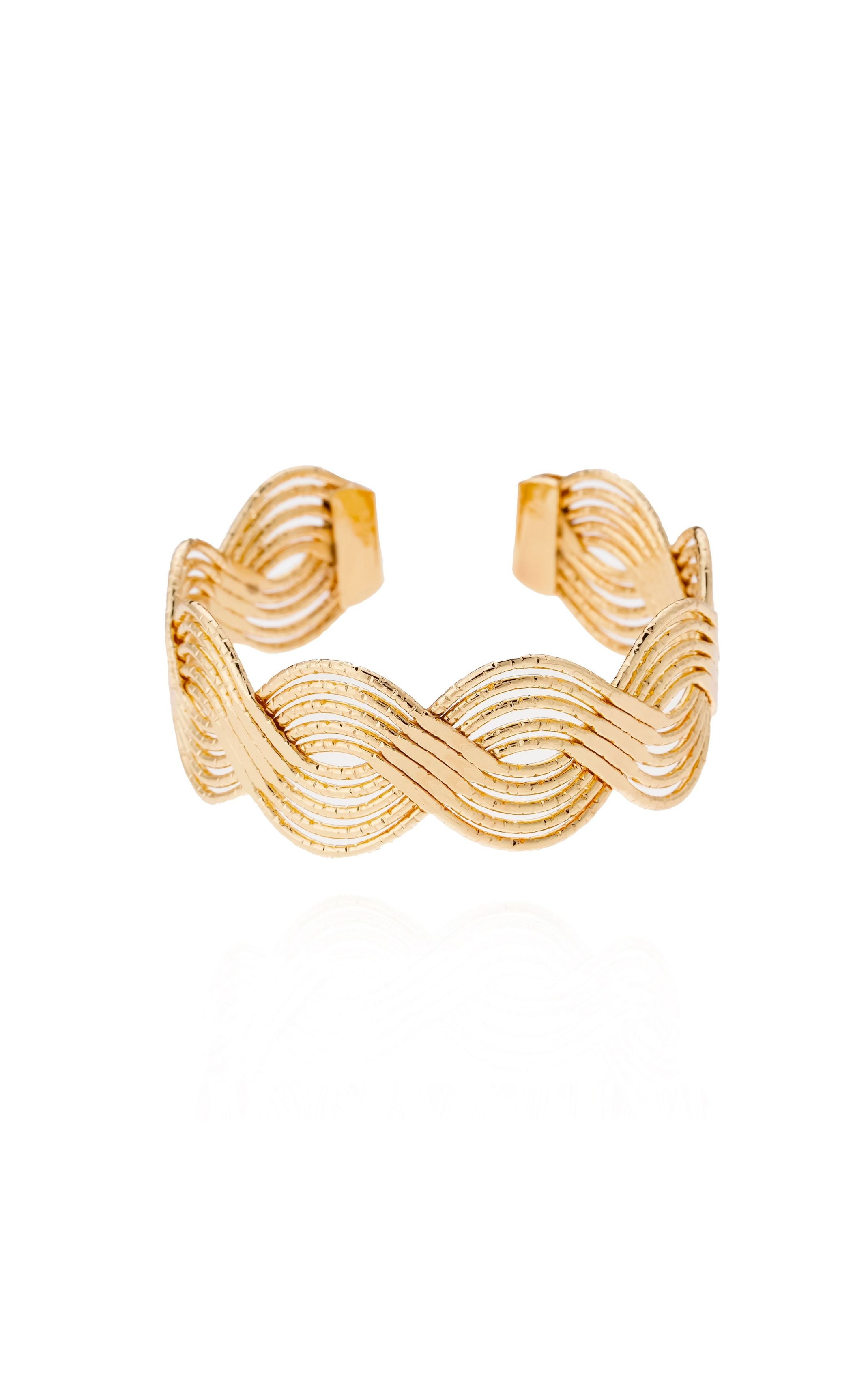 A small cuff, where the 14-carat gold links undulate in a metallic wave, Kali stands out as an emblematic piece in the Prestige collection. Its powerful, graphic lines, skilfully interwoven in an ample, regular hand-crafted pattern, make this cuff a sumptuous creation that defies convention with softness and boldness. Adjustable for optimum comfort.