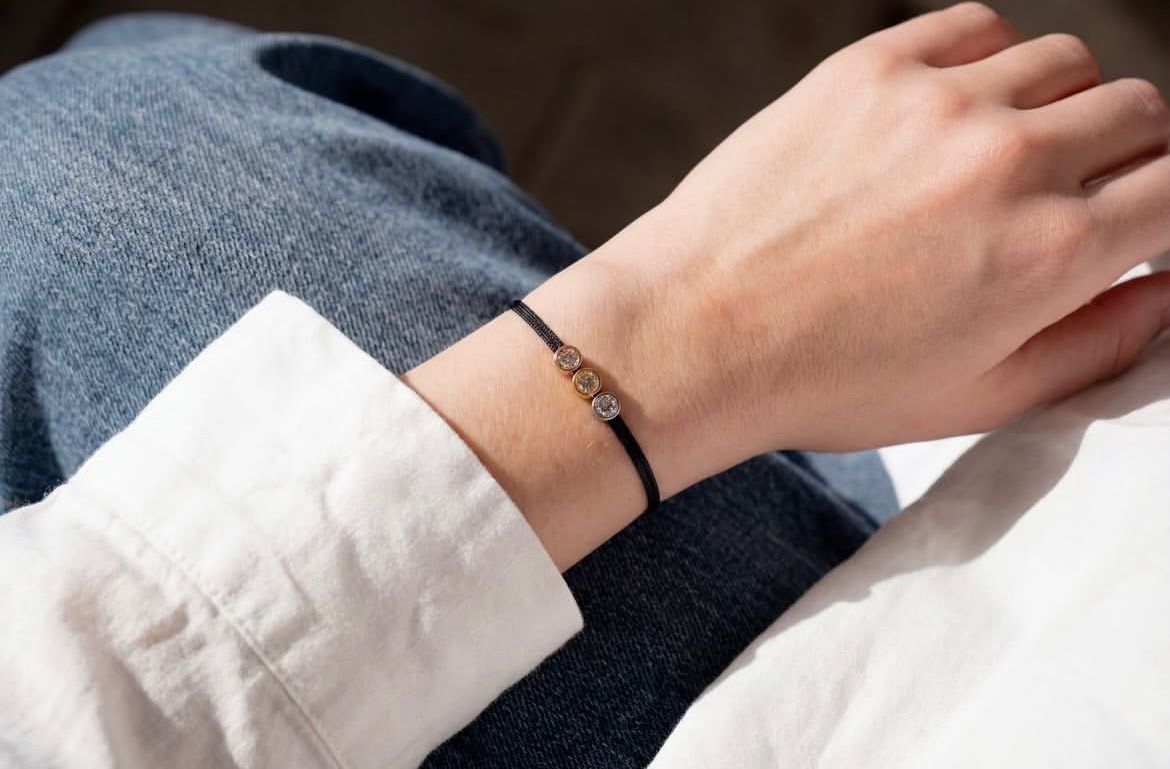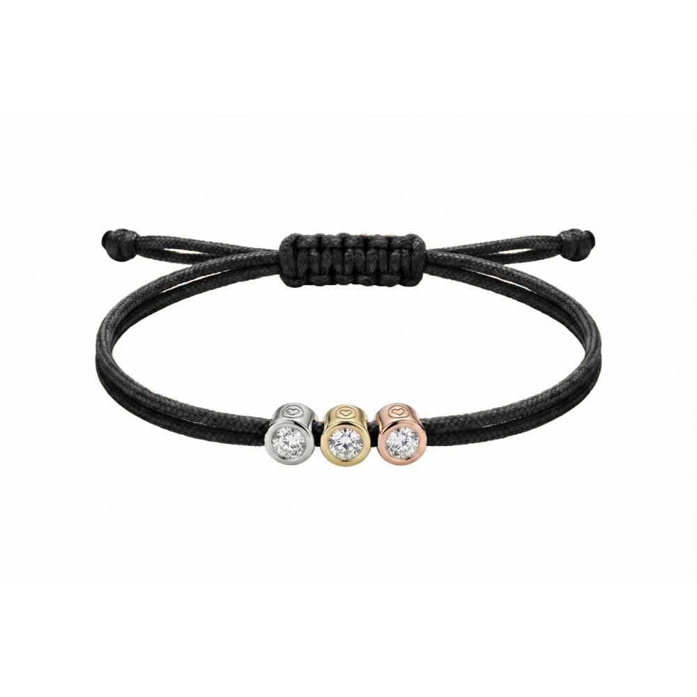 A celebration of freedom and light. The Mix features three separate diamonds that dance independently on the cord, catching light from every angle. By combining white and yellow gold-toned housings, it creates a rhythmic contrast that symbolizes the unique moments that make up our story. Past, present, and future, united but free.