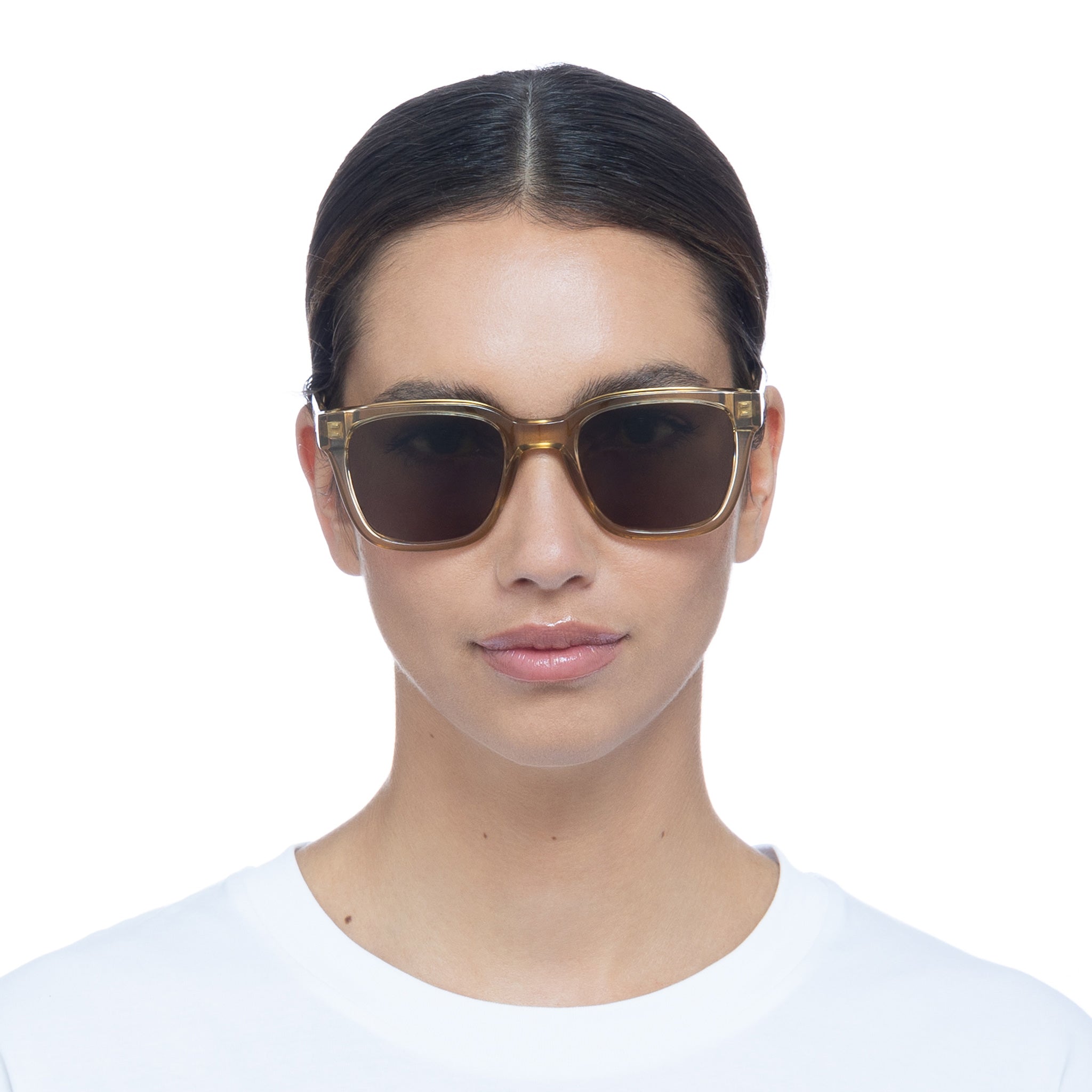 Finished in a translucent brown frame with dark brown tonal polarised lenses.