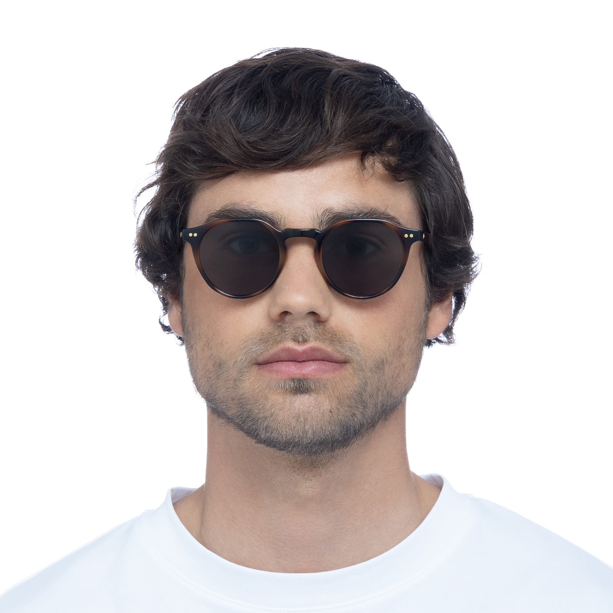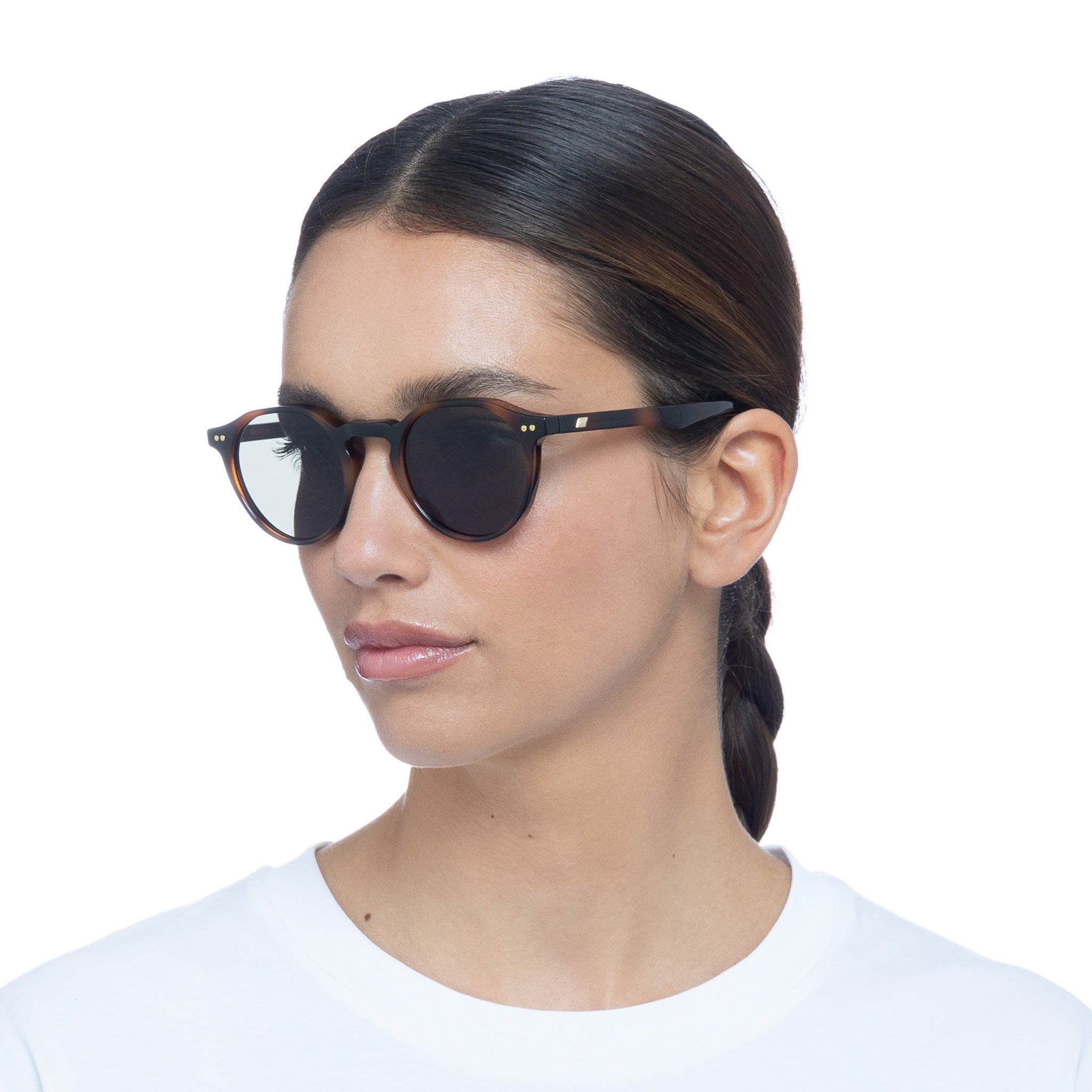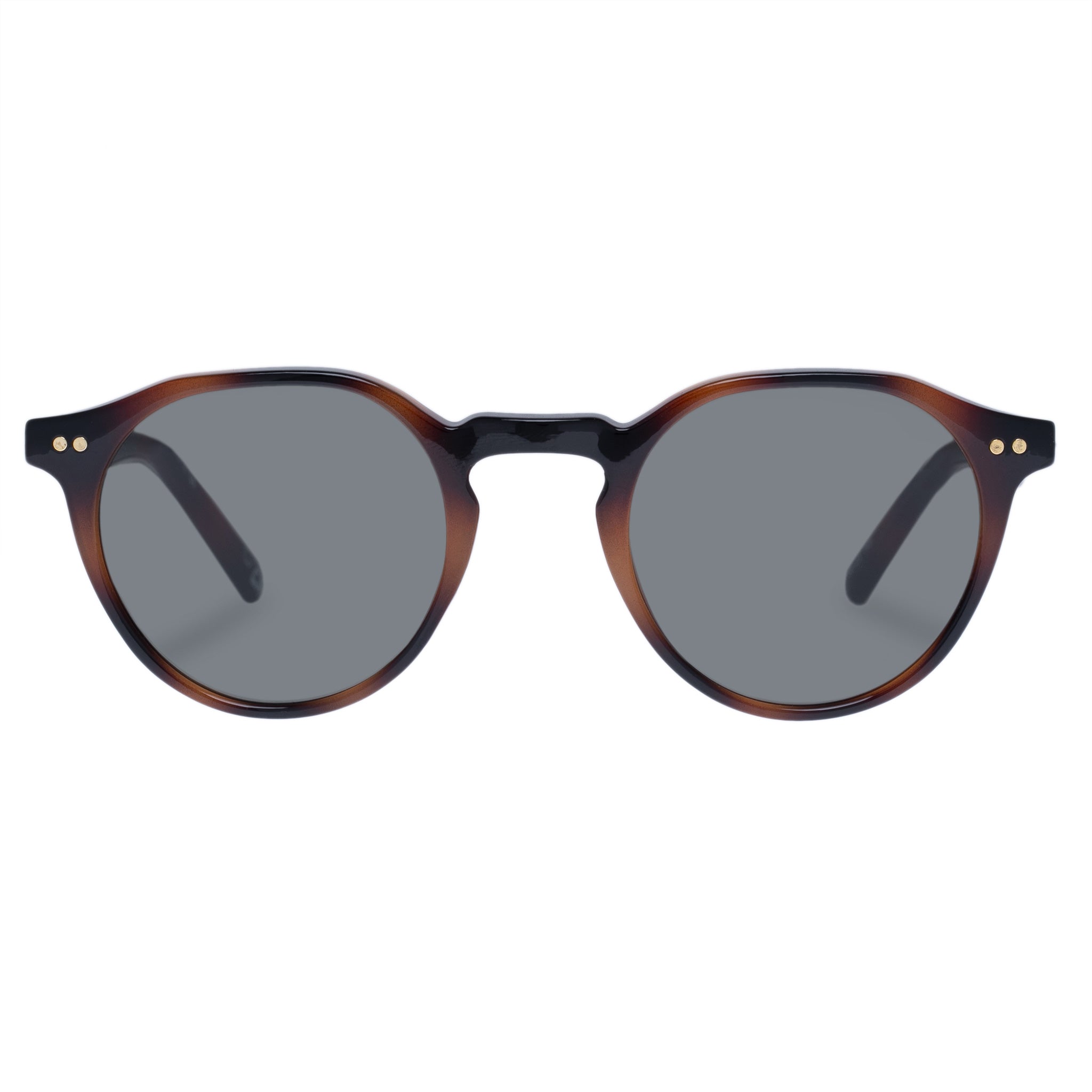 Uninhibited, carefree, and classic, our GALAVANT sunglasses are a modern update on a classic vintage silhouette. With squared-off details, this easy-to-wear round style is the perfect all-around sunglass offering a timeless aesthetic. Featuring a keyhole nose bridge and refined angles, this midsize style is finished with discreet dual rivet detailing and Le Specs flagstripe metal hardware.