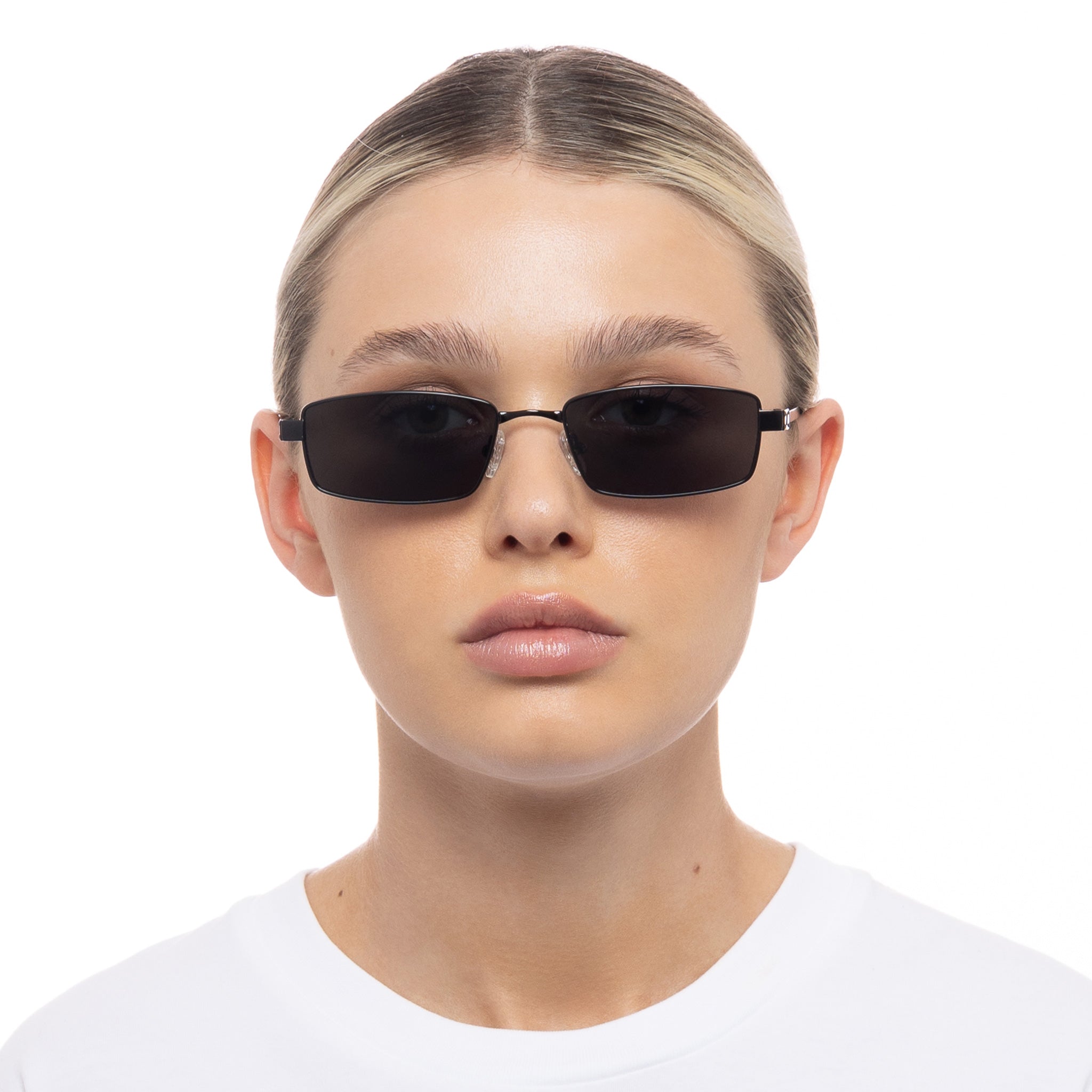 Defined by its sleek rectangular profile, our BIZARRO sunglasses are an ode to early '00s minimalism. Designed with three-dimensionally crafted metal flag stripe hardware on the temples, this flattering unisex style features adjustable nose pads for a bespoke fit.