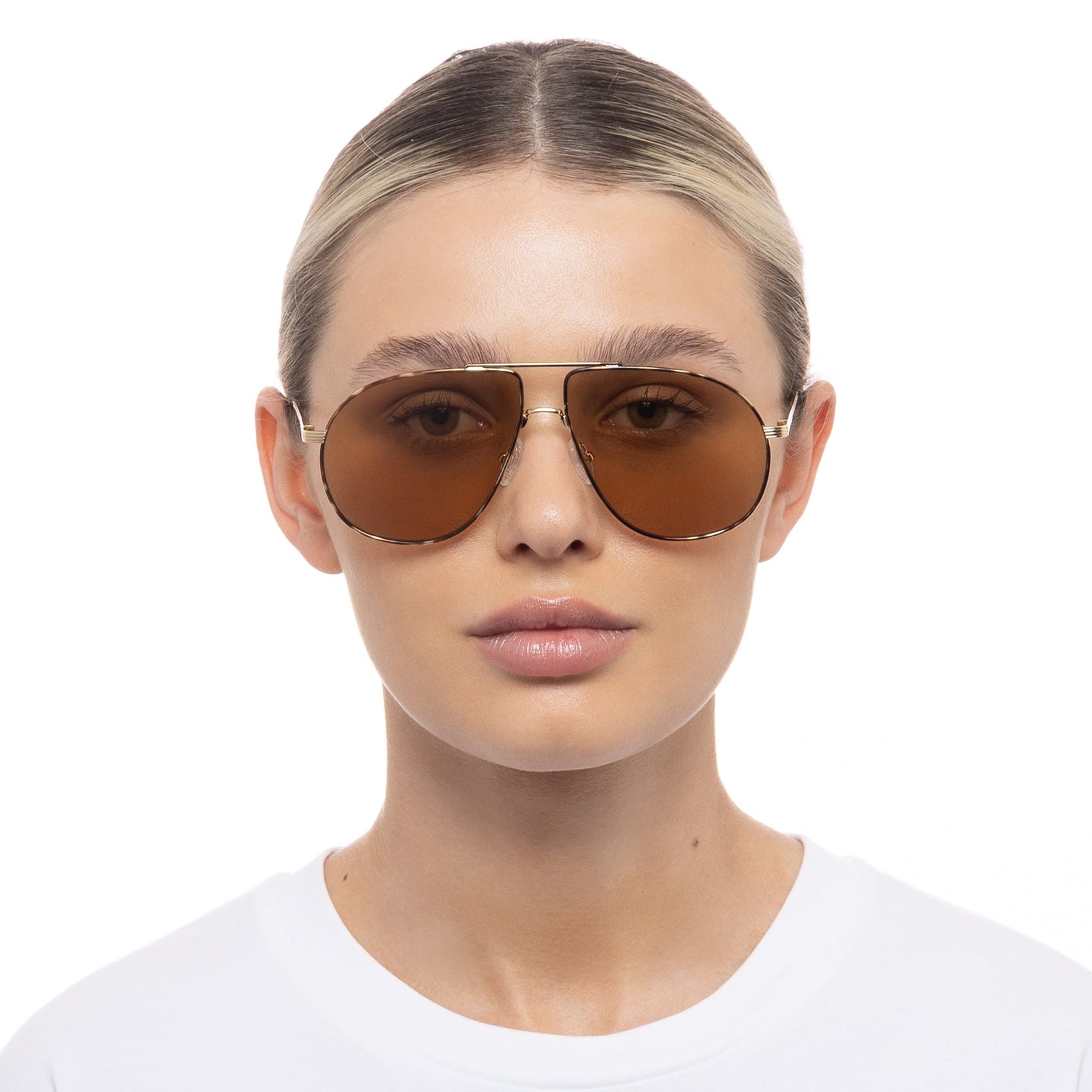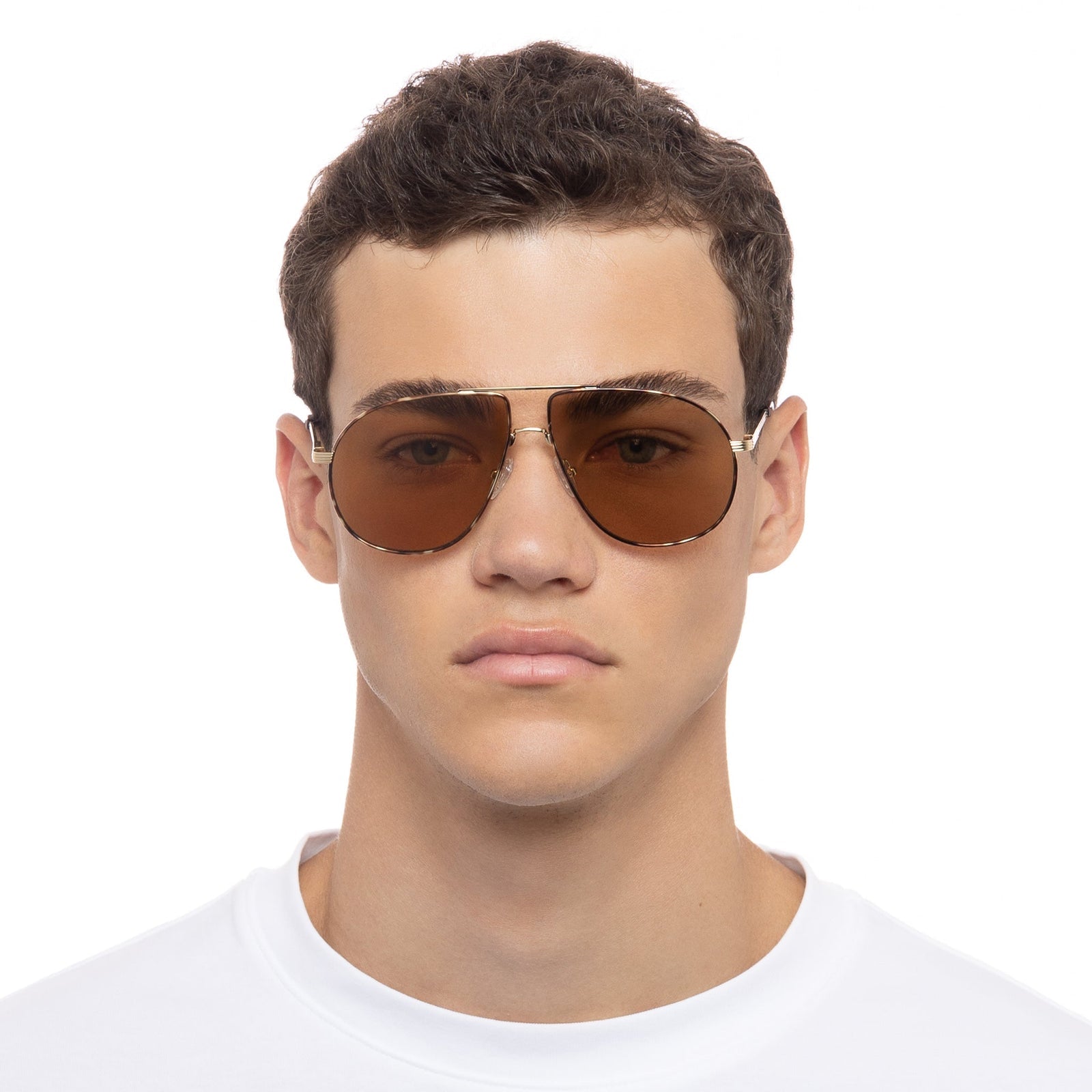 Exuding a carefree spirit and effortless aesthetic, our SCHMALTZY sunglasses adopt a contemporary approach to the retro aviator silhouette. Designed with luxurious pinstripe textured metal temples, this unisex aviator is fitted with spring hinges and adjustable nose pads for a tailored fit.