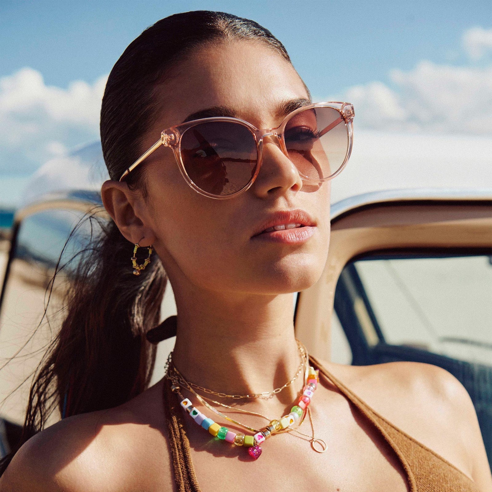 Finished in a soft translucent frame and tonal gradient lenses.